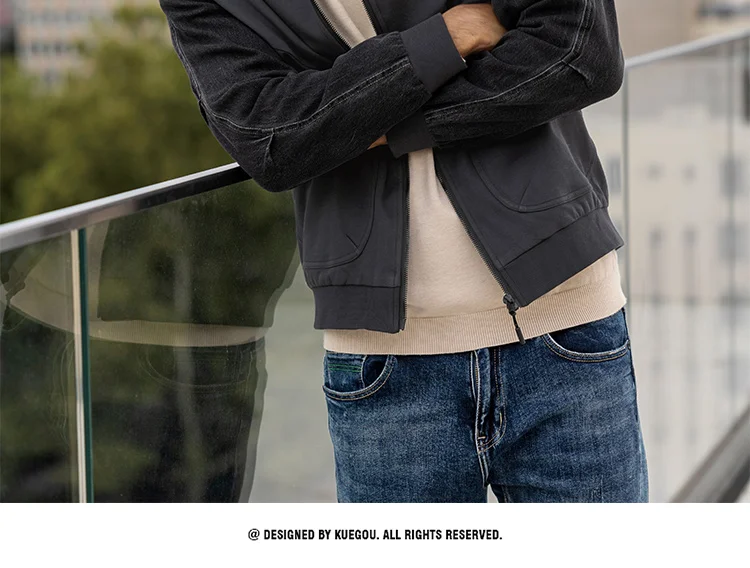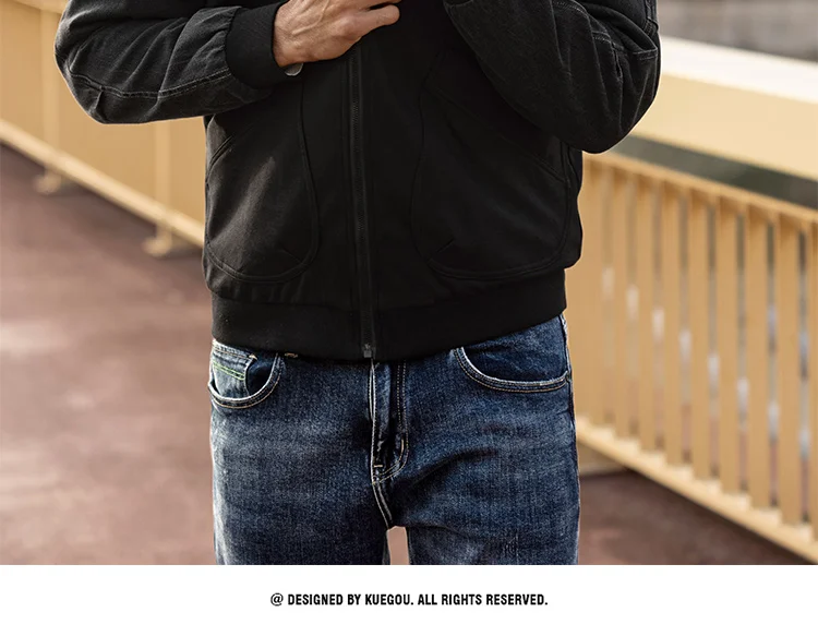 Мужская куртка-бомбер на молнии KUEGOU, Черная бейсбольная куртка-б...