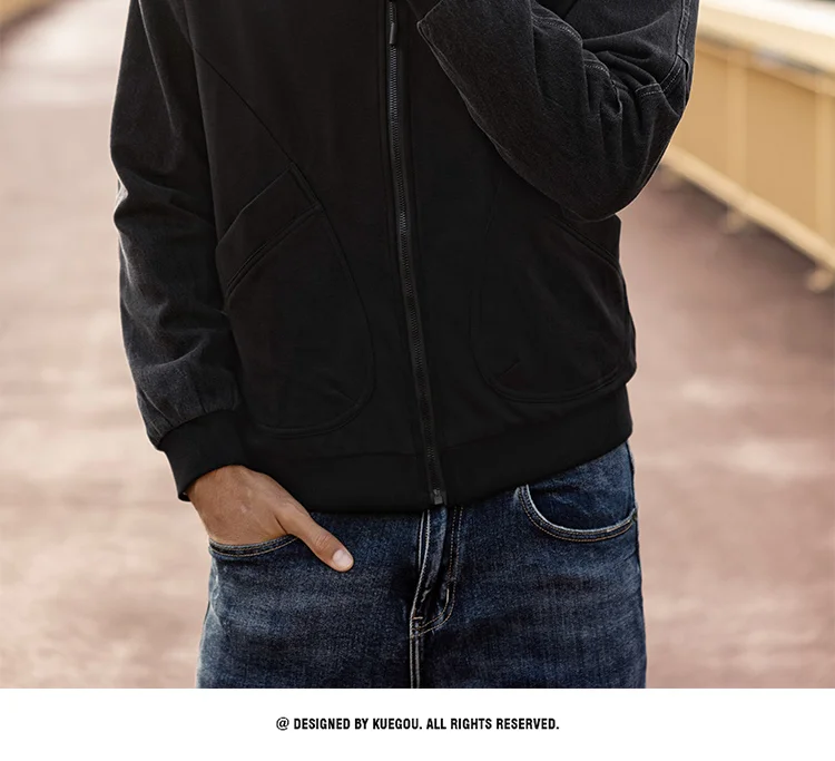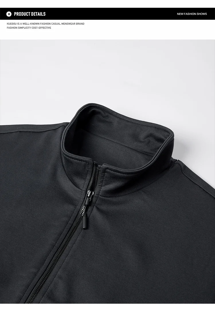 Мужская толстовка с воротником-стойкой KUEGOU, черная толстовка из ...