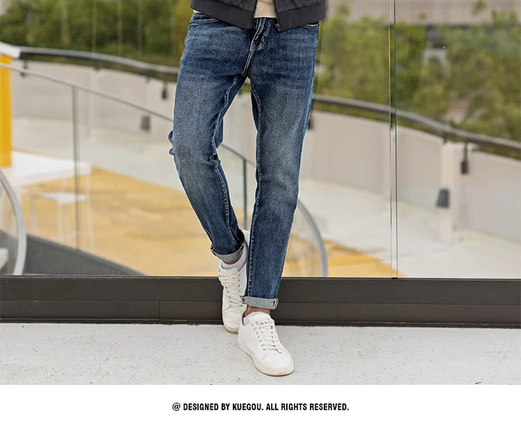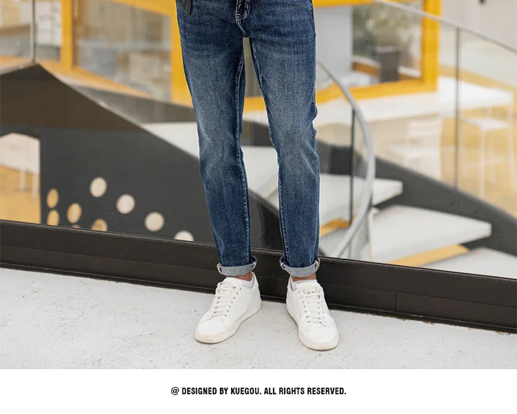 KUEGOU хлопчатобумажная одежда мужские рубашки стильное джинсовое п...