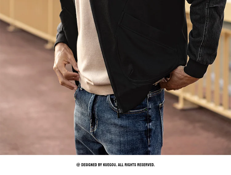 Мужская куртка с двумя карманами KUEGOU, черная Повседневная куртка на молнии, с двумя карманами, Осень-зима 2022