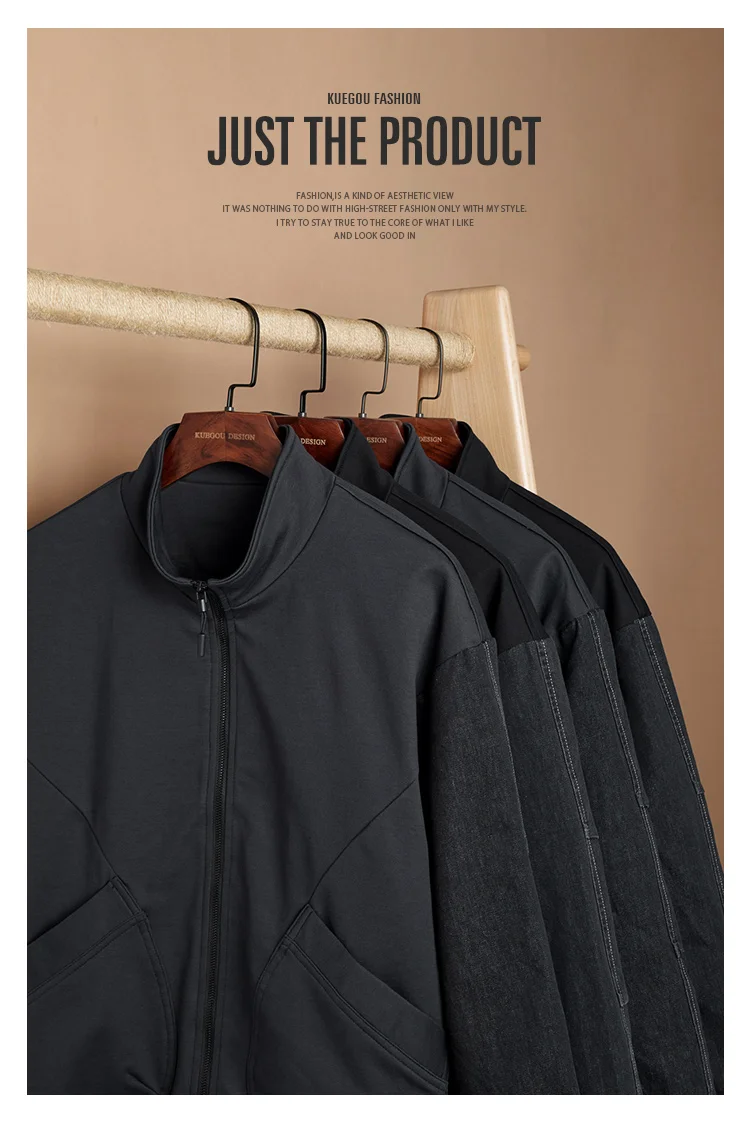 KUEGOU 2022 Весенняя черная Повседневная куртка Мужские хлопковые п...