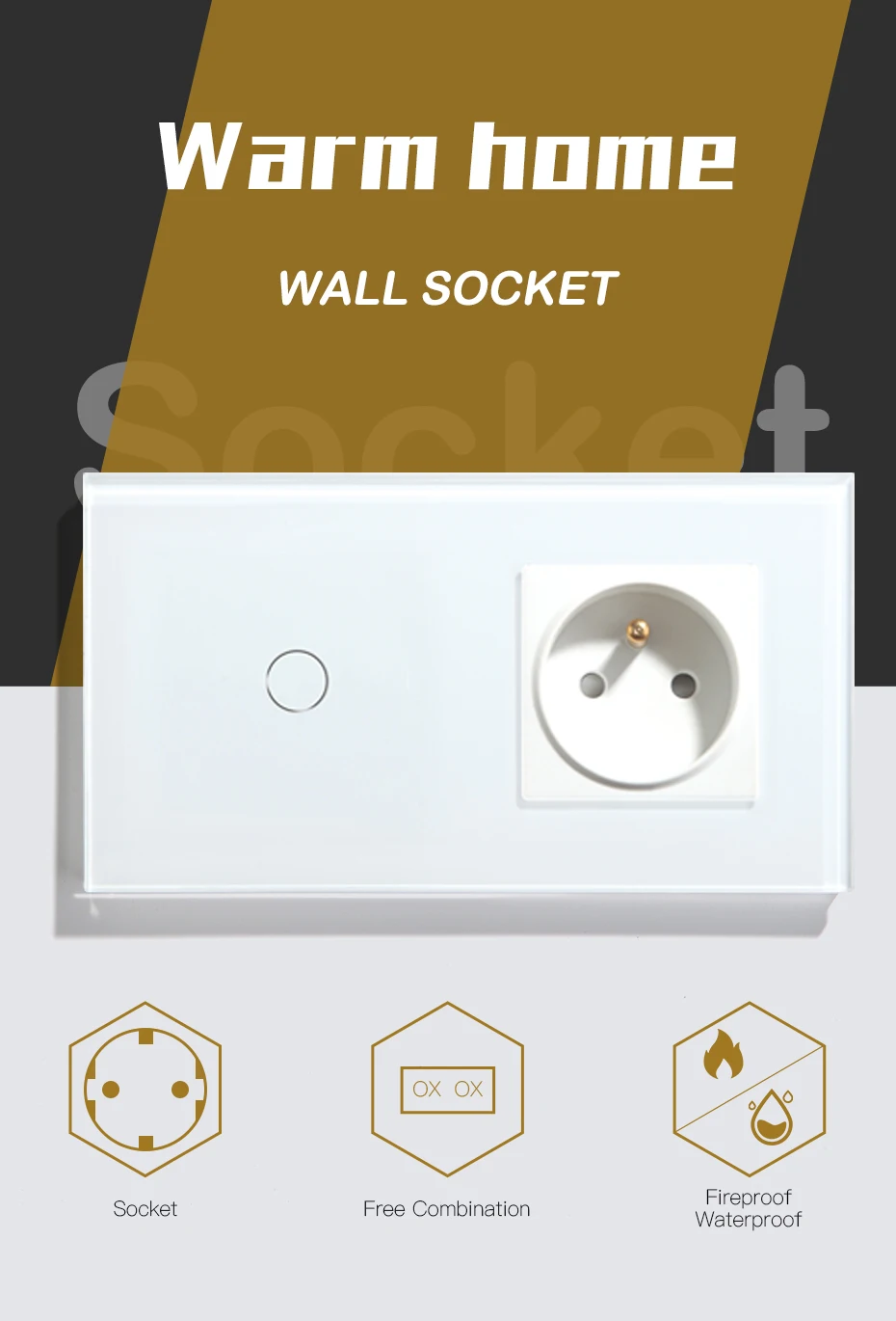BSEED FR Стандартный настенный сенсорный выключатель с FR гнездом 1 банда 1 способ белый кристалл стеклянная панель выключатели подсветка для дома