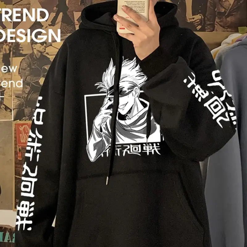 Худи мужское и женское с длинным рукавом, уличная одежда в стиле хип-хоп, худи с аниме принтом джутсу кайсена, Свитшот в стиле Харадзюку, осень