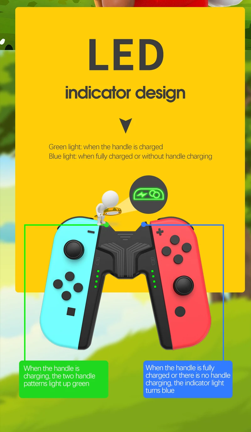 【Безопасная защита 】: зарядная ручка Joy-con имеет встроенный смарт-чип безопасности, которая автоматически отключается через 30 секунд после полной зарядки joy-con, чтобы убедиться, что joy-con не будет перезаряжен и безопасен и надежен. Он также обеспечивает избыточное напряжение, ток перегрузки, короткое замыкание и защиту от перегрева, так что вы можете быть уверены, что joycon играет во время зарядки.