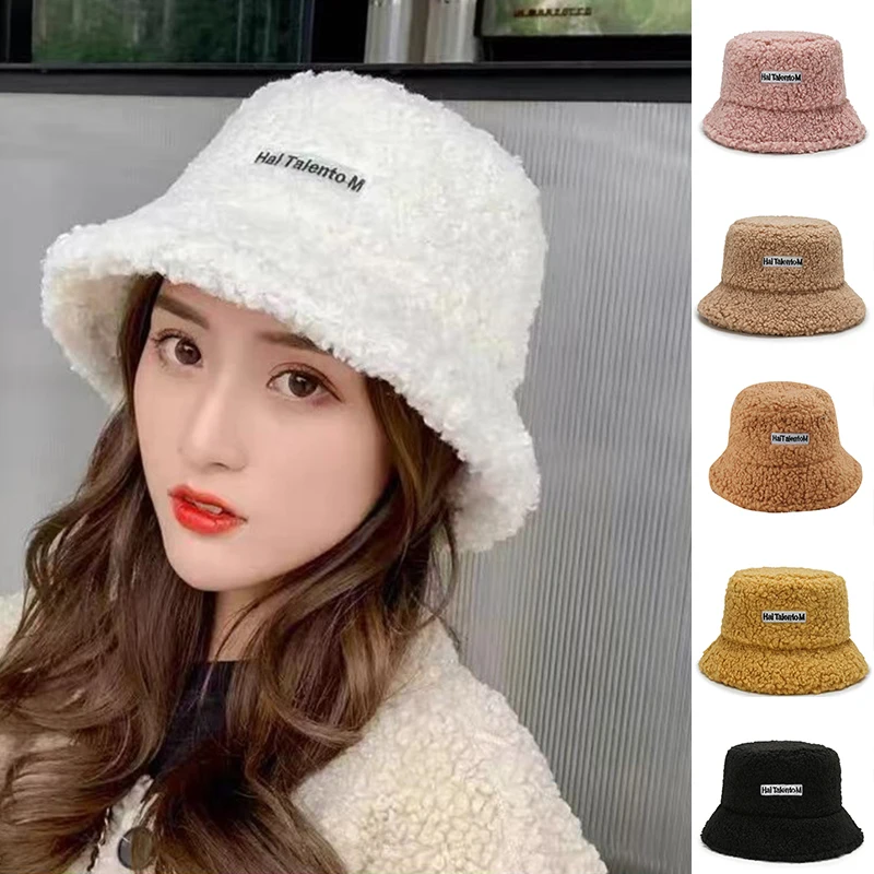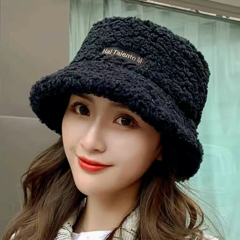 Панама из искусственного меха ягненка, зимняя Рыбацкая Теплая Бархатная шапка для женщин, утолщенная уличная Панама Боб, шляпа, женские плюшевые шапки