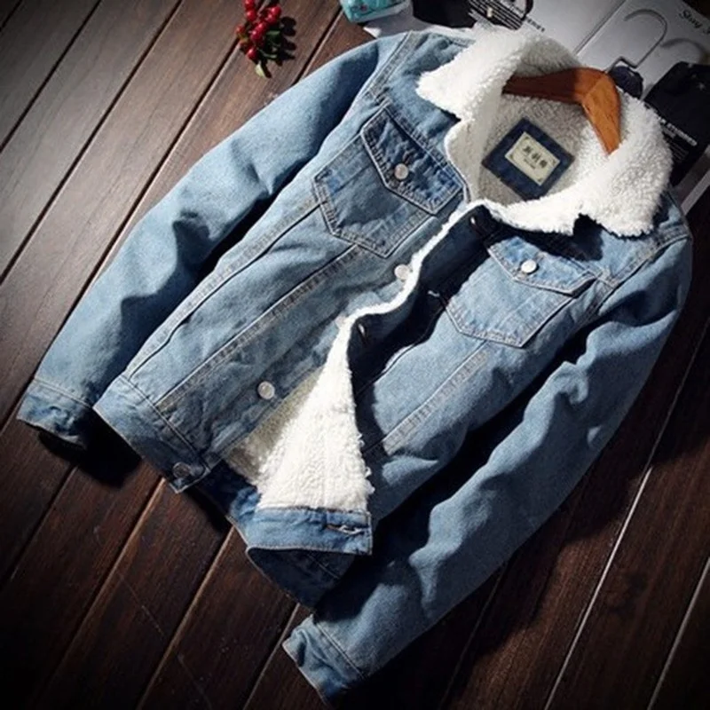 Осень-зима 2021, Мужская Легкая джинсовая куртка из овечьей шерсти,...