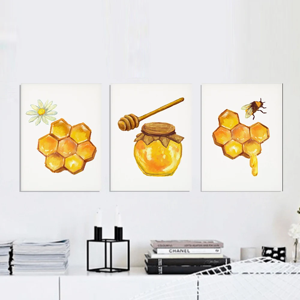 Настенная картина с изображением пчелы под старину, естественный постер в винтажном китайском стиле, насекомые, пчела, желтая тонированная схема пчелы, декор для стен