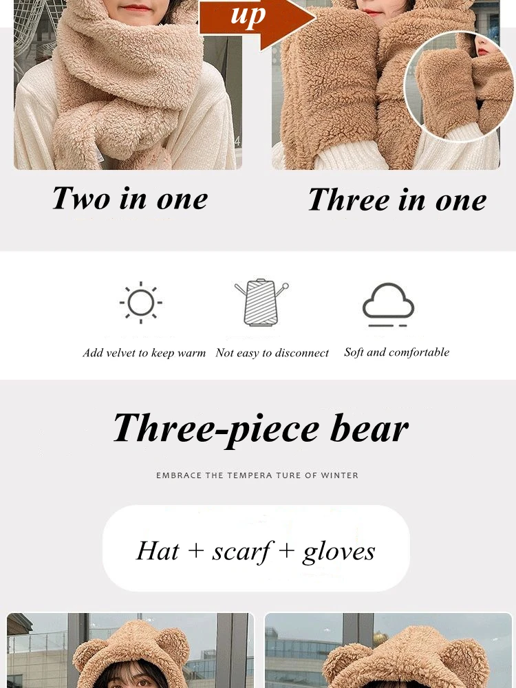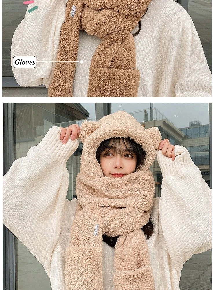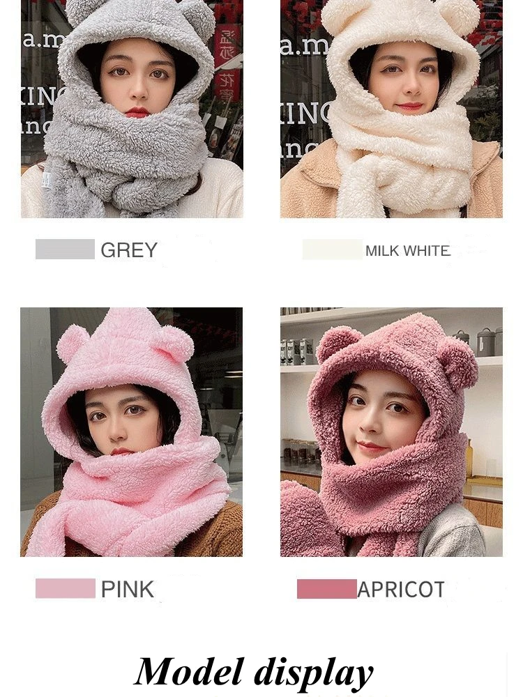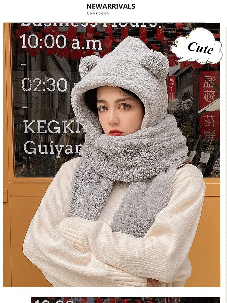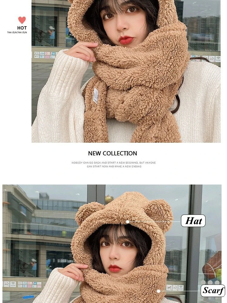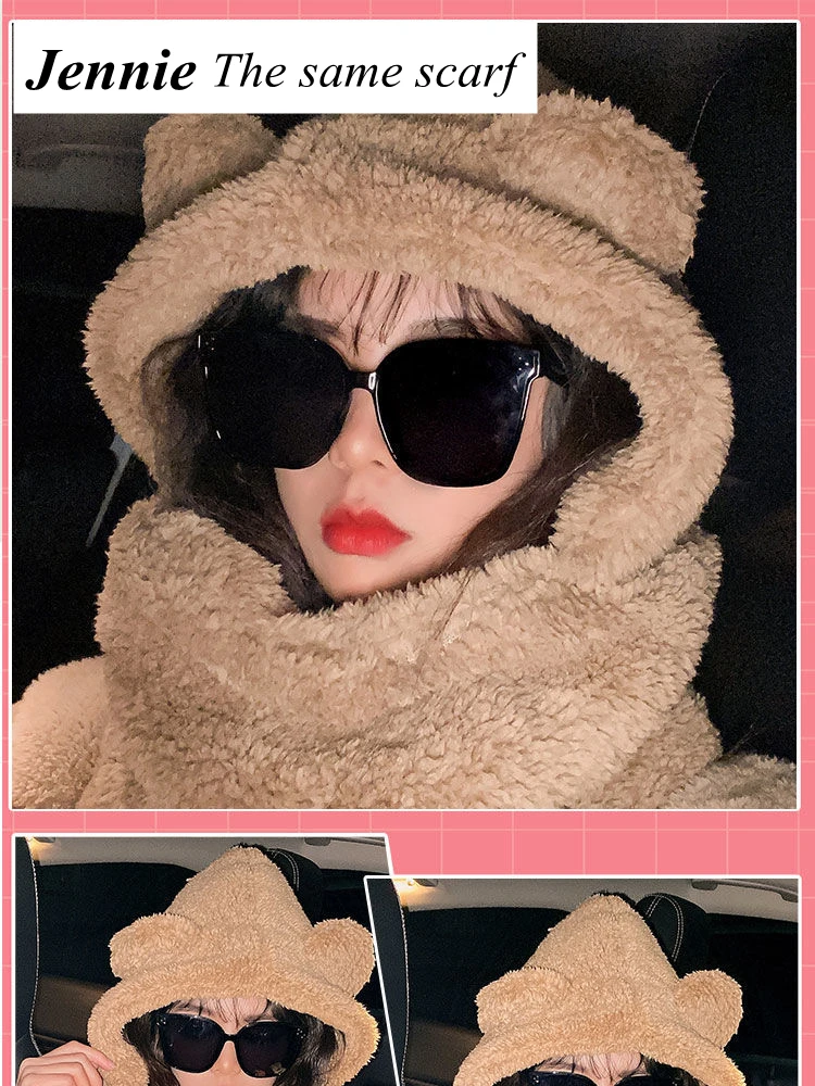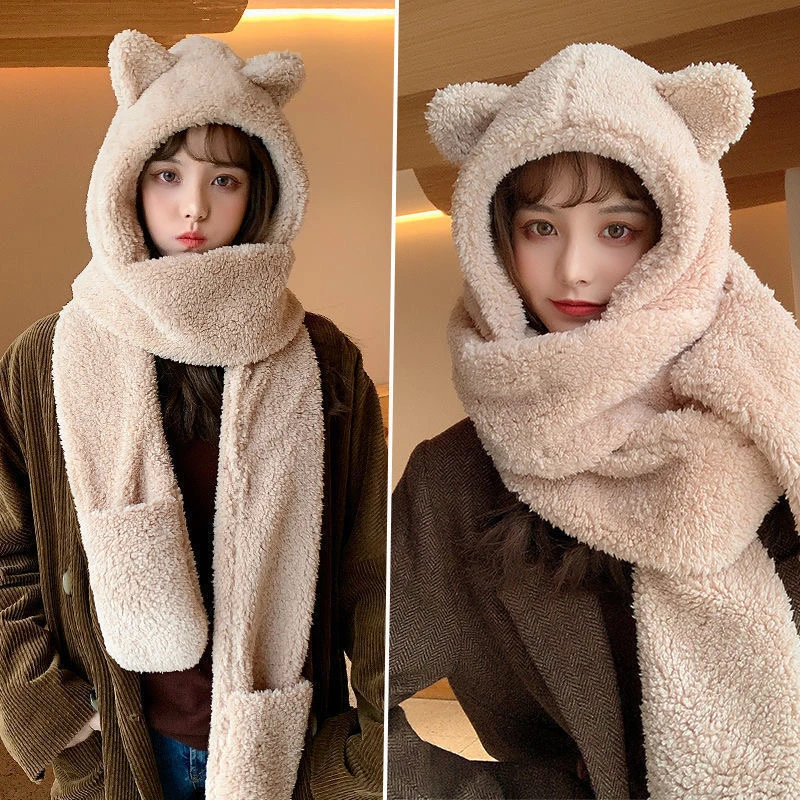 Корейский зимний комплект из плюшевого шарфа и шарфа, милая шапка с...