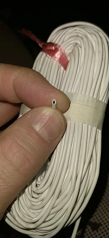 Очень тонкий провод. Сечением в 1.5-2 мм. Не уверен в его эффективности. Если и будет греть, то на долго его не хватит. Перегорит думаю быстро. Купил 20 м, а бухточка пришла размером с кулак. Воняет до безобразия противно.Из какого химозного пластика они делают это , только им известно. Не рекомендую. Не тратьте время и деньги.