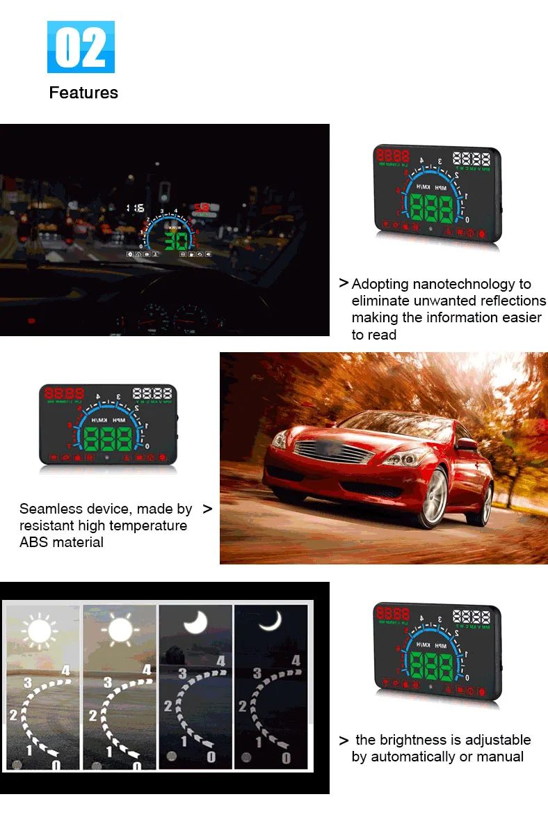 7. Автоматическое включение/выключение: HUD Пуск и выключение автомобиля, эффективная защита автомобильного аккумулятора; Сохранение режима ручного переключения, более легкое управление HUD.