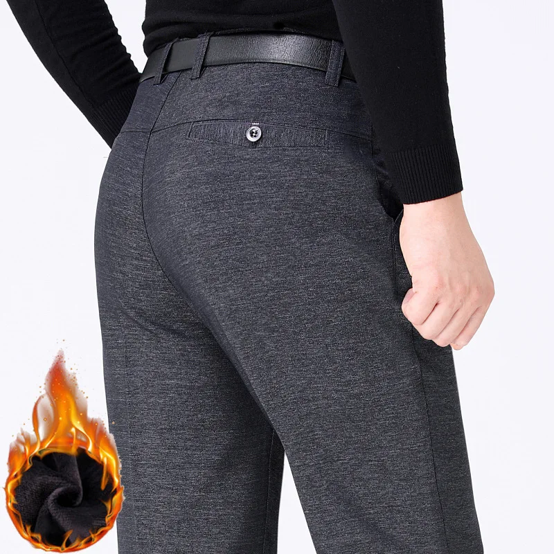 Брюки мужские зимние с флисовой подкладкой, теплые деловые повседневные Прямые плотные Стрейчевые брюки, брендовая одежда темно-синего цвета, 40