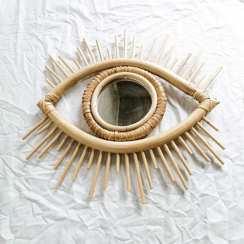Инновационное художественное украшение из ротанга в форме глаз, зеркало для макияжа, настенная подвеска