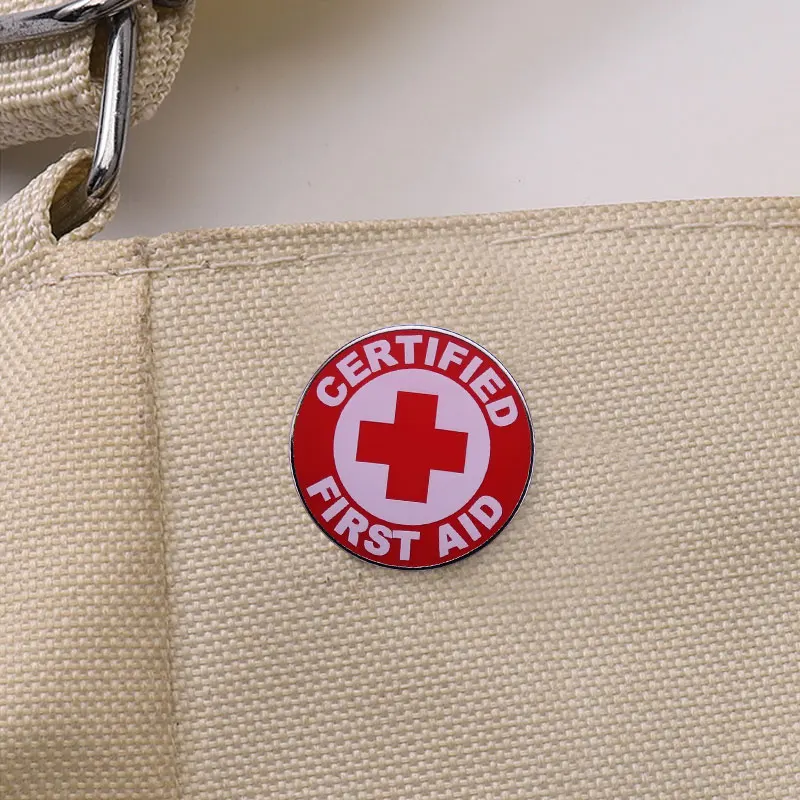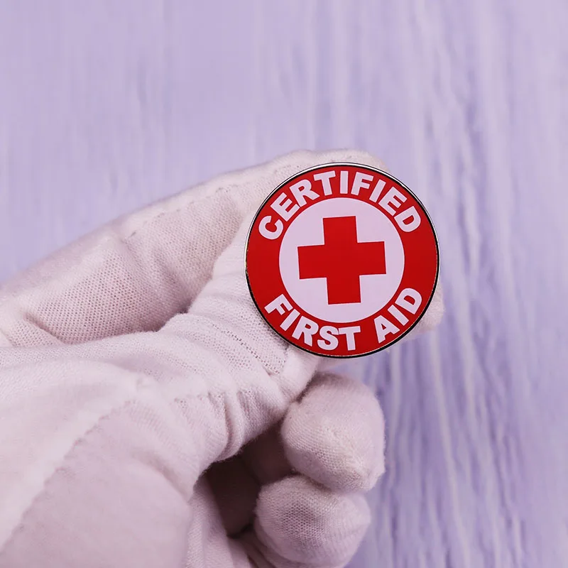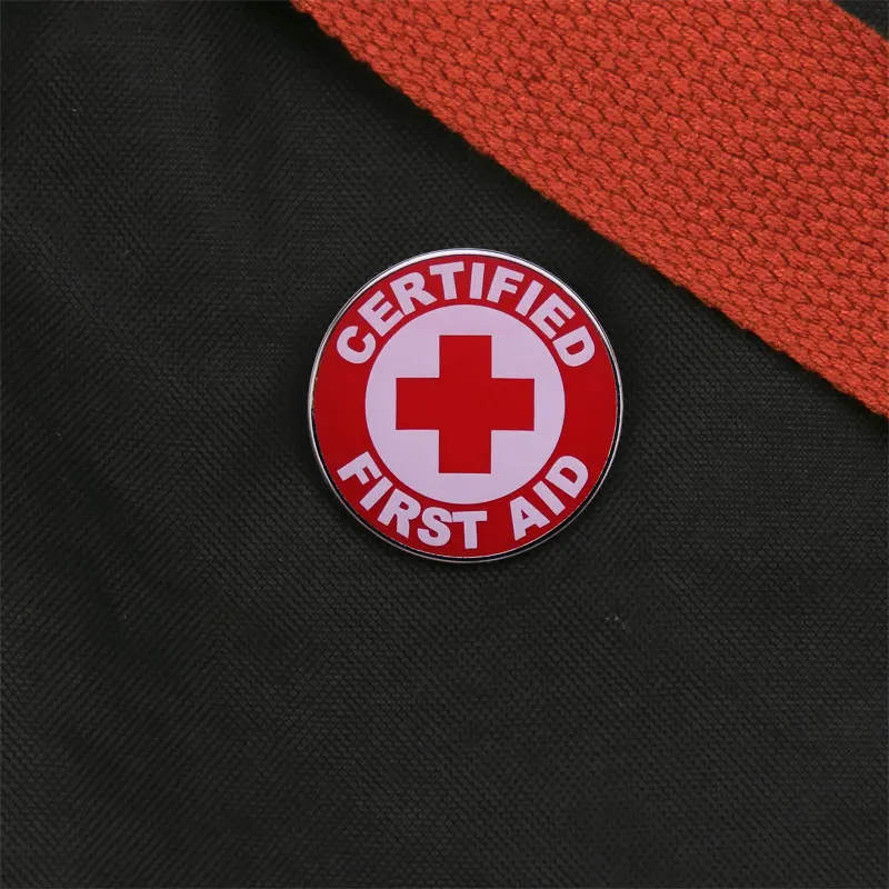 Сертифицированная красная эмалированная булавка для оказания первой помощи, значок для медицинских и медицинских работников, больничный значок