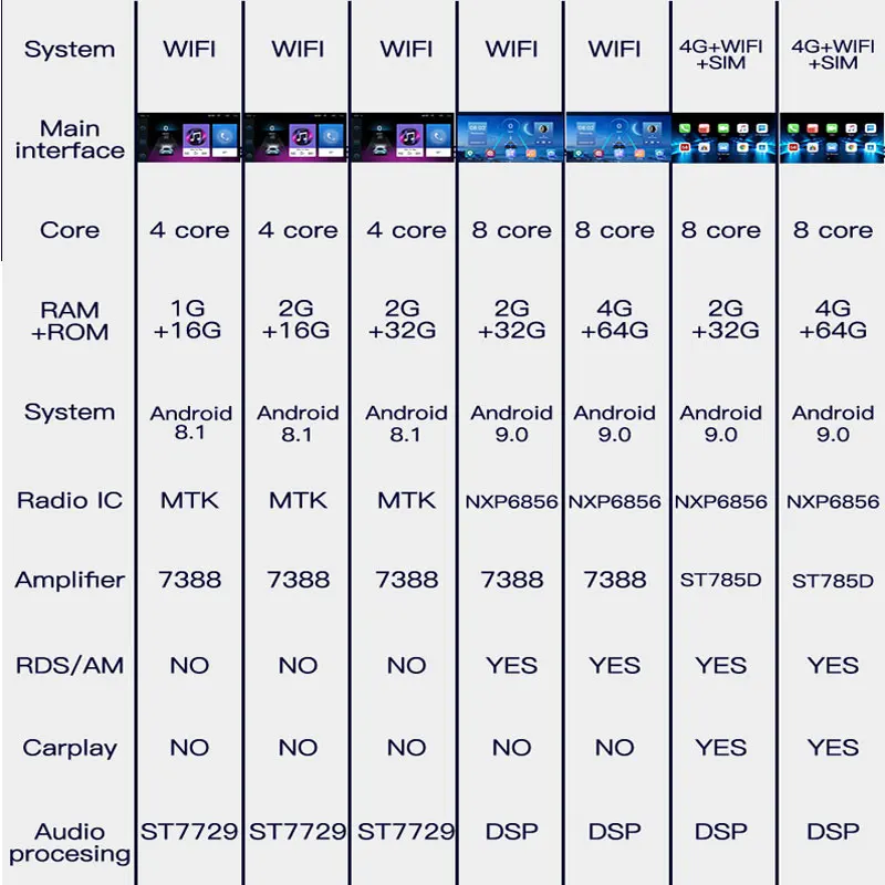 Для Lifan 620/Solano 2008 2009 2010 2011 2012 2013 2014 20151, 4-х ядерный конфигурация включает в себя (Оперативная память + Встроенная память): 1 Гб + 16 ГБ/2 ГБ + 16 ГБ/2G + 32G [дополнительно];2, 8-ядерный конфигурация включает в себя (Оперативная память + Встроенная память): 7260L-2G + 32G / 7260L-4G + 64G / 4G-SIM-5760-2G + 32G / 4G-SIM-5760-4G + 64G [дополнительно];3, 4-х ядерный содержит: версия: Android 8,1;Четырехъядерный процессор MTK8227 / Cortex-A7Поддержка автомобиля logo5; Sfactory пароль: 8888Разрешение: HD 2.5D,1024*600;Не поддерживает функцию AM, функцию RDS;Обычная посылка WiFi поддерживает функцию видеовыхода;4, 8-Core содержат: версия: Android 9,0;Восемь ядер: CPU Quad core и GPU Quad core соответственно;Поддержка автомобиля logo5;Sfactory пароль: 8888; Разрешение: HD 2.5D,1024*600;Версия 7260L-WIFI: поддерживает функции DSP, сплит-экрана; Не поддерживает видеовыход;4G-SIM-5760-WIFI версия: поддерживает функции DSP, IPS, Carplay, сплит-экрана; Не поддерживает видеовыход;5. Операционная система Android может установить приложение Google Play store Skype Facebook youTube Twitter и т. Д.;6. Поддержка: радиостанция, Bluetooth Вызов, Bluetooth музыка, управление рулевым колесом, встроенный WiFi, MP3, видео музыка (MPG, AVI), навигация, видеовыход, зеркальная связь, USB 4G LTE WIFI ключ и другие функции;