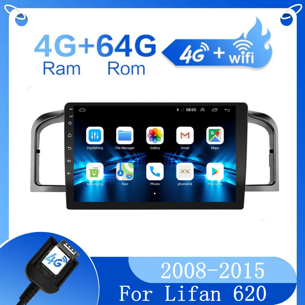 Автомобильный мультимедийный видеоплеер для Lifan 620, Android 9,0, с радио, навигацией, GPS, воспроизведением, бесплатной картой, 2 din, автомобильное радио, стерео, 4G