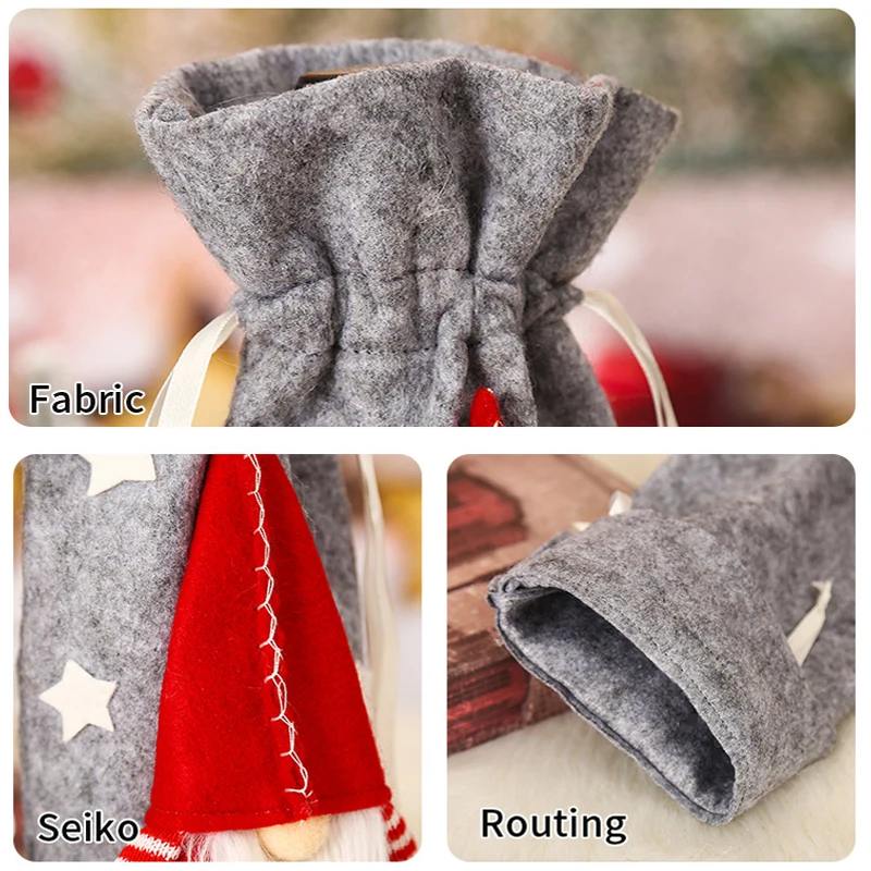 Рождественские подарочные пакеты, держатель для бутылки вина, пылез...