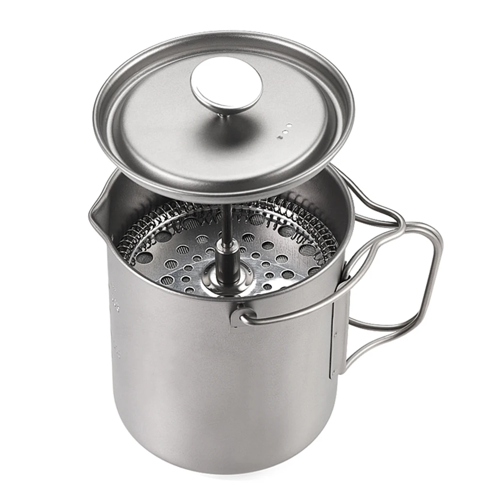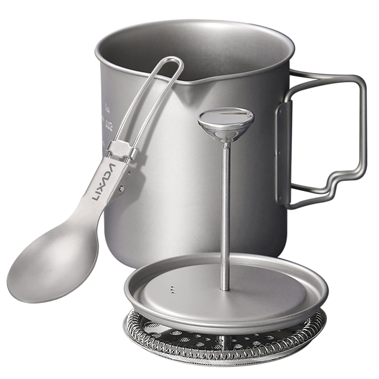 Титановая кофейная чашка Lixada 750 мл, кружка, кофейник с французским прессом, Кофеварка, внешнее искусство со складной титановой ложкой