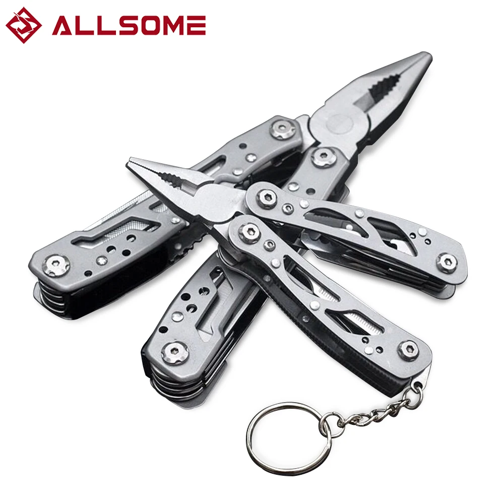 Мультитул из нержавеющей стали ALLSOME 13 в 1, карманный нож, складные плоскогубцы, мини портативные серые складные плоскогубцы, карманный инструмент