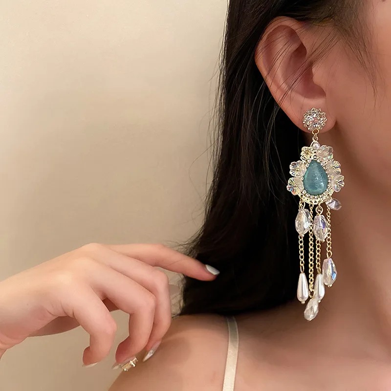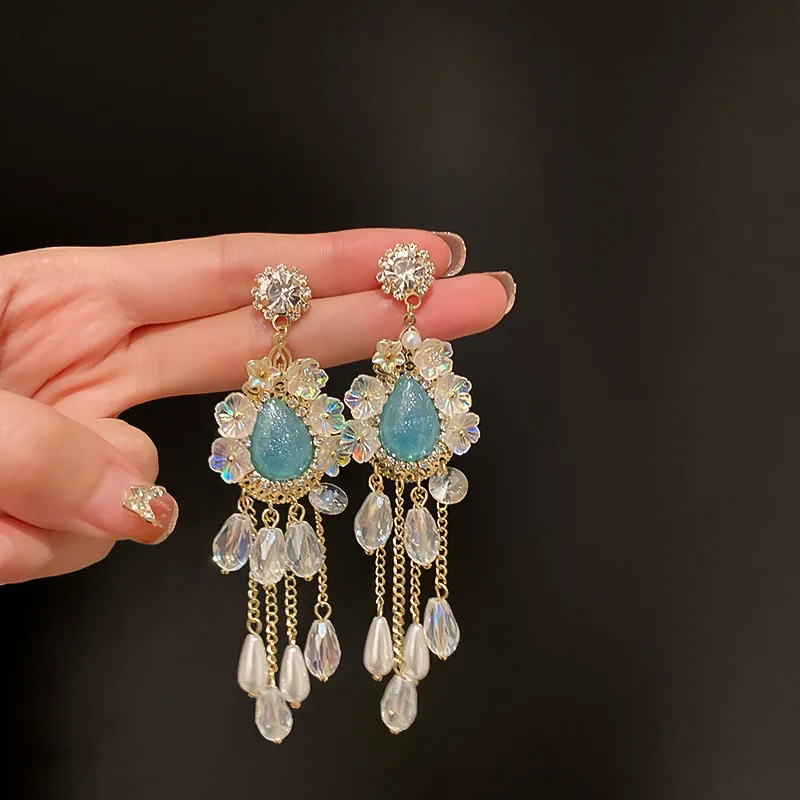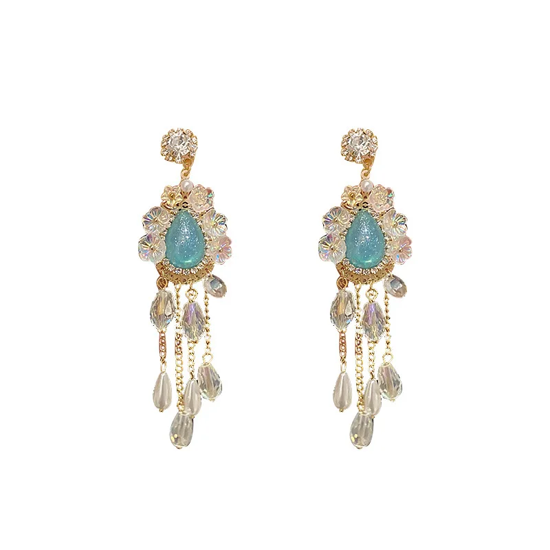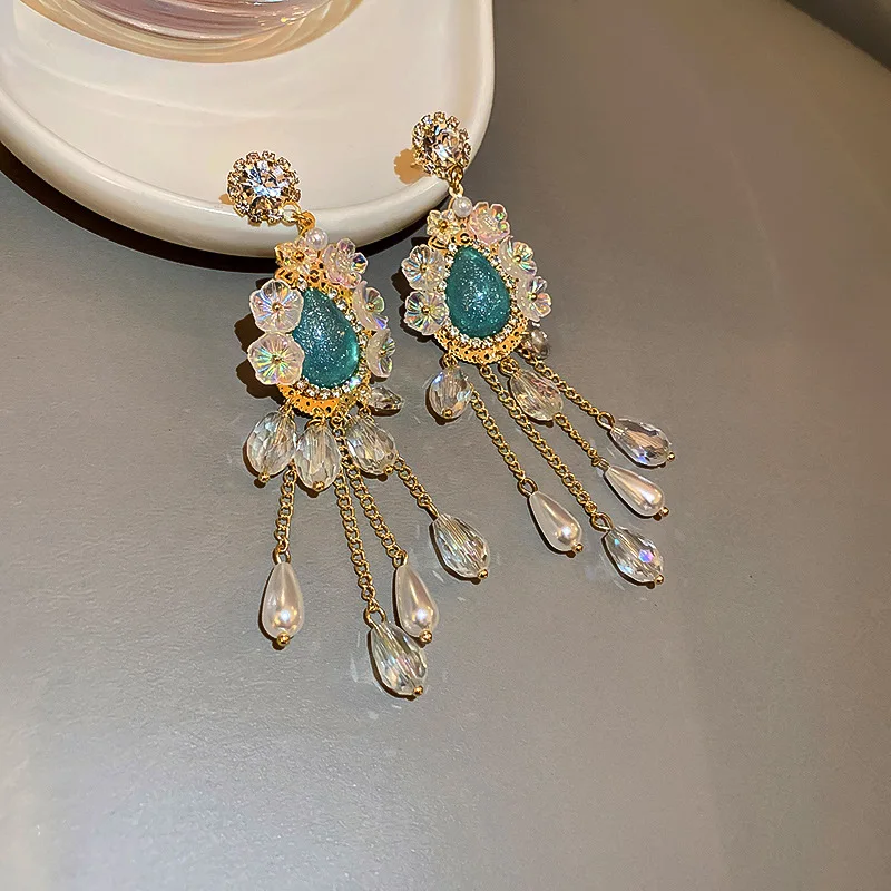 Женские винтажные серьги-подвески XIALUOKE, Ретро стиль, с кисточками, мозаикой, кристаллами и цветами из смолы, вечерние ювелирные изделия, подарок