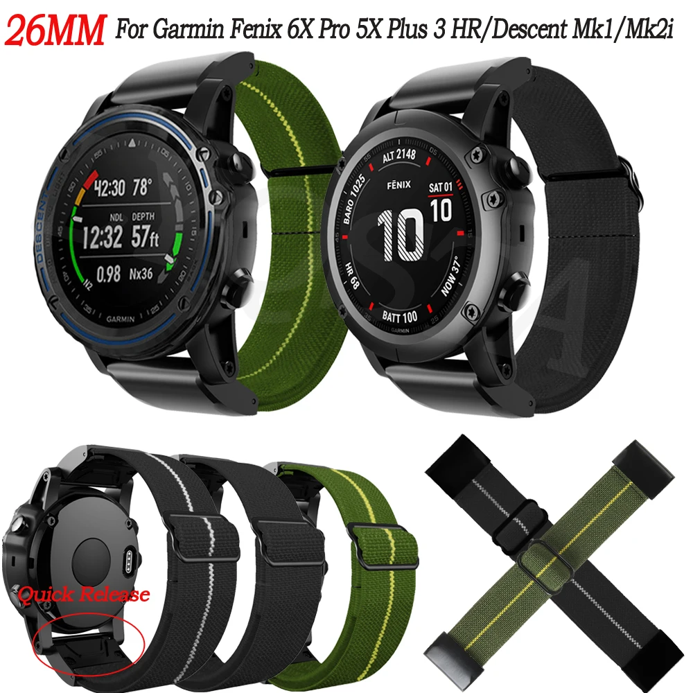 Ремешок для смарт-часов Garmin Fenix 6X Pro 5X Plus 3 HR, быстросъемный эластичный плетеный нейлоновый сменный Браслет, 26 мм