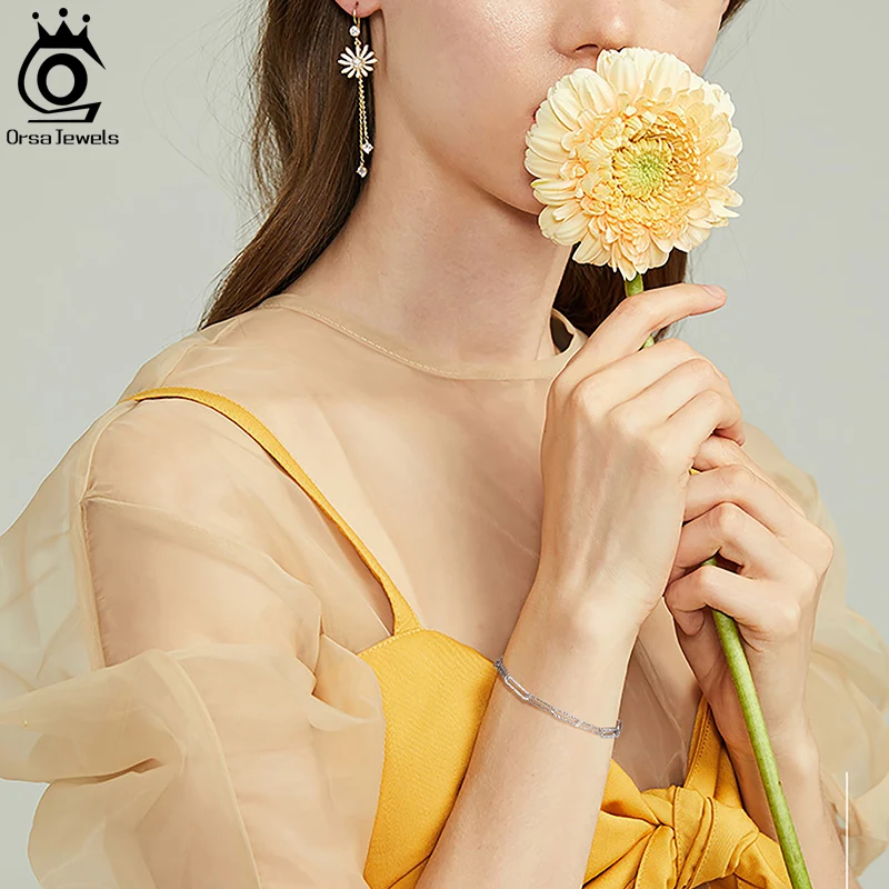 ORSA JEWELS цельный браслет из стерлингового серебра 925 пробы, итальянский браслет ручной работы, 3,5 мм, Скрепка, звено, Чеканная цепочка, браслет для мужчин и женщин SB120