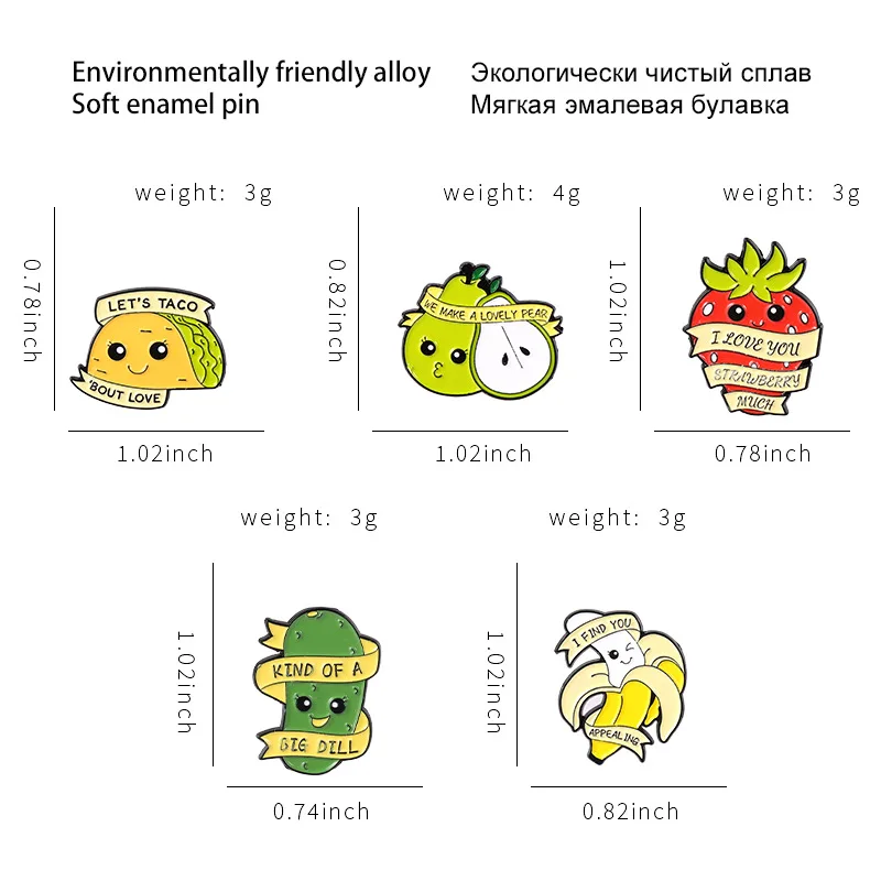 Значок с отчеством еды эмалированные булавки клубника груша Тако бу брошь на лацкан значок Сумка мультяшное ювелирное изделие подарок для детей друзей