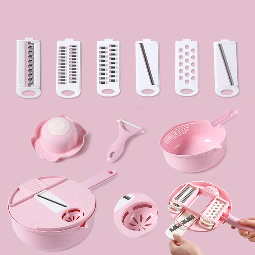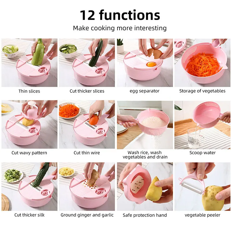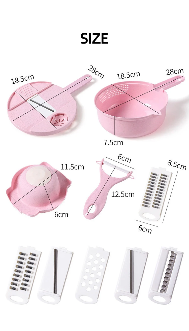 Список деталей:1 X резак для цветов 1 X толстые чипы 1 X тонкий ломтик 1 X ломтик 1 X толстый лист 1 X терка для имбиря 1 X защита рук 1 X Овощечистка 1 X подвесной рот 1 X корзина для слива 1 X разделитель яиц 1 X разделочная доскаОписание подсветки:1. Обновленная версия: вы получите многофункциональную овощерезку с 6 взаимозаменяемыми лезвиями, контейнер для еды, сливную корзину, терку, яичный разделитель и защитный держатель для рук.2. Универсальность слайсера: Идеально подходит для приготовления низкоуглеродистой и здоровой Овощной лапши и макарон. Легко нарезать Твердые овощи и фрукты. Это также терка, мандолин, измельчитель овощей и резак. Просто помогая вам сделать профессиональные гирлянды, такие как яблочные чипсы, Луковые Кольца, картофельные гнезда, элегантные салаты, овощные начинки для пиццы и многое другое.3. Безопасность пищевых продуктов: Изготовлен из высококачественных Пищевых и натуральных материалов для здоровья Пшеничной Соломы. Безопасная Посудомоечная машина. Не представляет опасности для вашего здоровья. Легко моется и выглядит красиво и стильно. Это принесет больше удовольствия вашей кухне. Прекрасный кухонный гаджет для вас. Лезвия очень острые и изготовлены из термообработанной нержавеющей стали. Вы можете легко получить 5 различных форм пищи по 5 лезвий-комбинаций.4. Безопасный дизайн: овощерезка защищает пальцы от случайных травм. Есть контейнер для еды для ловли ломтиков, тертая еда устраняет необходимость в разделочной доске. Этот овощерезка делает салат более легкимПодробное описание:Материал: нержавеющая сталь + ПП + АБСЦвет (опционально): синий, розовый, зеленыйРазмер: 29,9*21*8,7 см