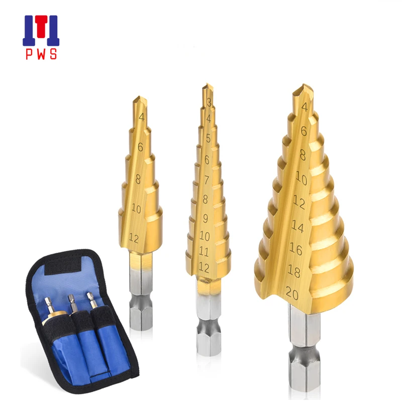 3 шт.компл. 3-12 мм 4-12 мм 4-20 мм HSS ступенчатое сверло с прямым желобом с титановым покрытием для дерева и металла, набор инструментов для сверления сердечника