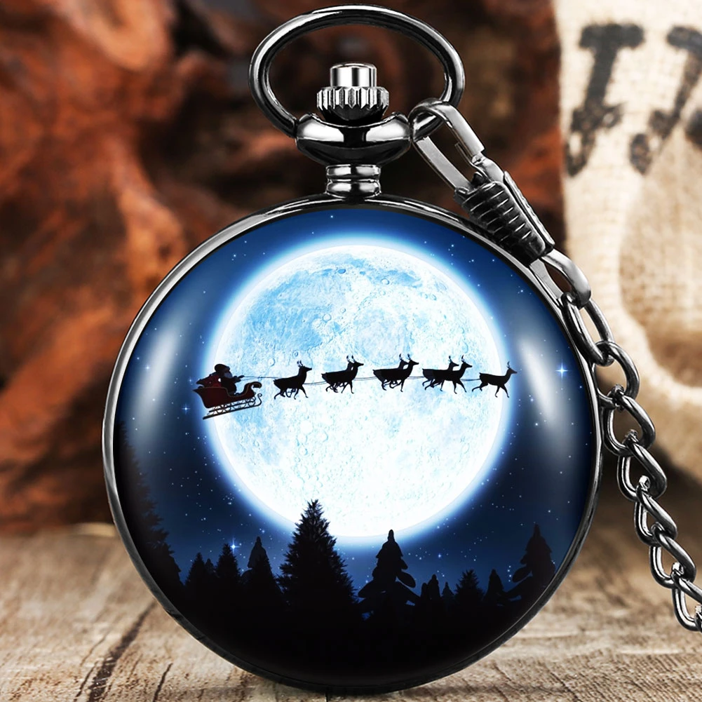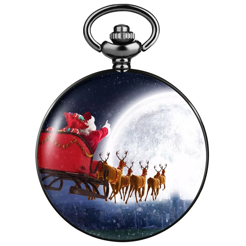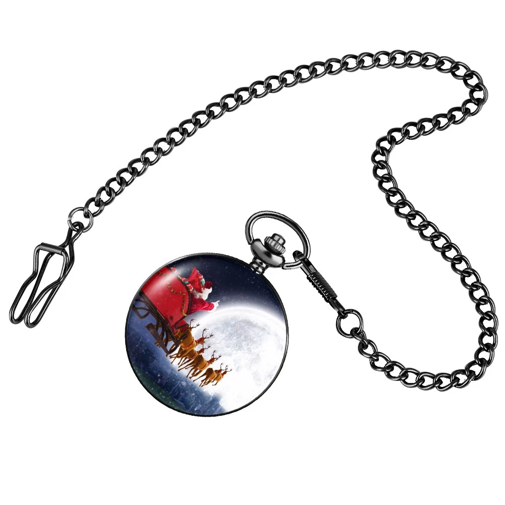 Изысканные кварцевые карманные часы Рождественская тема модная цепо...