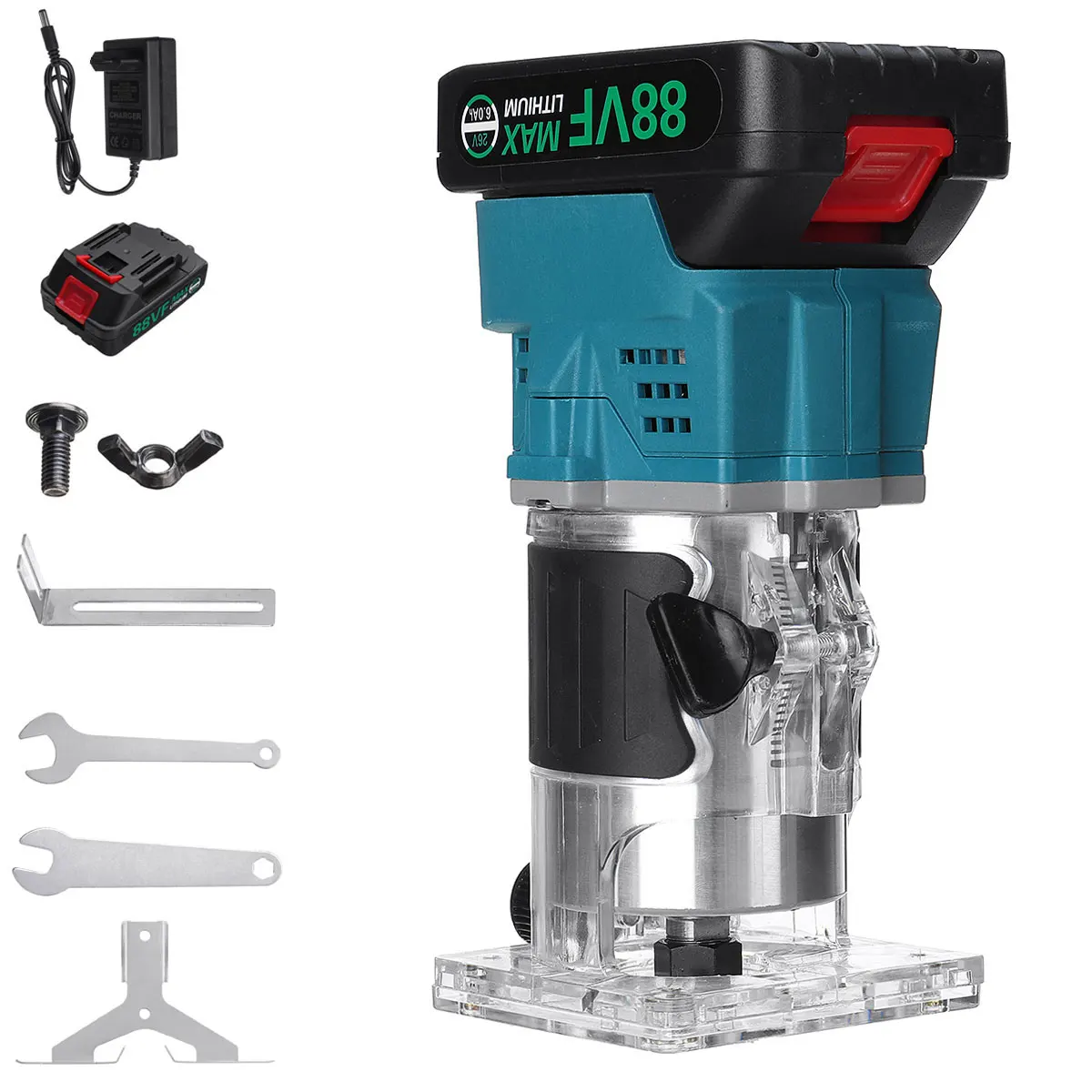 Особенности:【Полностью Медный двигатель и прочный корпус: высокая производительность, низкое тепло. Корпус изготовлен из алюминия, прочный, водонепроницаемый и пылезащитный.Стандарт качества древесины маршрутизатор: покрытая резиновая ручка, удобно держать и легко использовать. Прозрачная основа, четкое управление, точное управление.Стальной патрон Цанга 1/4 "6,35 мм: более плотный зажим и более легкая замена для фрезов. Корпус содержит линейку и глубина обработки может быть до 2 см. Одно касание переключателя для легкого открытия и закрытия.Широко используется для деревообработки: используется для деревообработки, дугообразного долбежа и обрезки, окантовки, крафта, обработки деревянных дверей, резки мебели и т. д.Беспроводная работа с литиевой батареей: источник питания с литиевой батареей 21 в (батарея входит в комплект). Вес деревянного маршрутизатора прибл. 1,6 кг. Это портативный и простых в использовании. Сильная мотивация. С защитой от перегрузки по току и защитой от перенапряжения, защитой от заряда и разрядки и защитой от перегрева.Спецификация:Материал: АБС-пластик, металлЦвет: синийБез скорости нагрузки: 35000 об/минМощность: 3000 ВтЧастота: 50 ГцДиаметр зажимного патрона: 6,35 ммДиаметр фрезы: 1/4"Мотор: бесщеточныйПосылка включает в себя:1 x Беспроводной фрезерный станок1/2x6,0 Ач батарея (опционально)Зарядное устройство-1 шт.1x6,35 мм Цанги1 х линейная направляющая1 базовая пластина4 x аксессуары