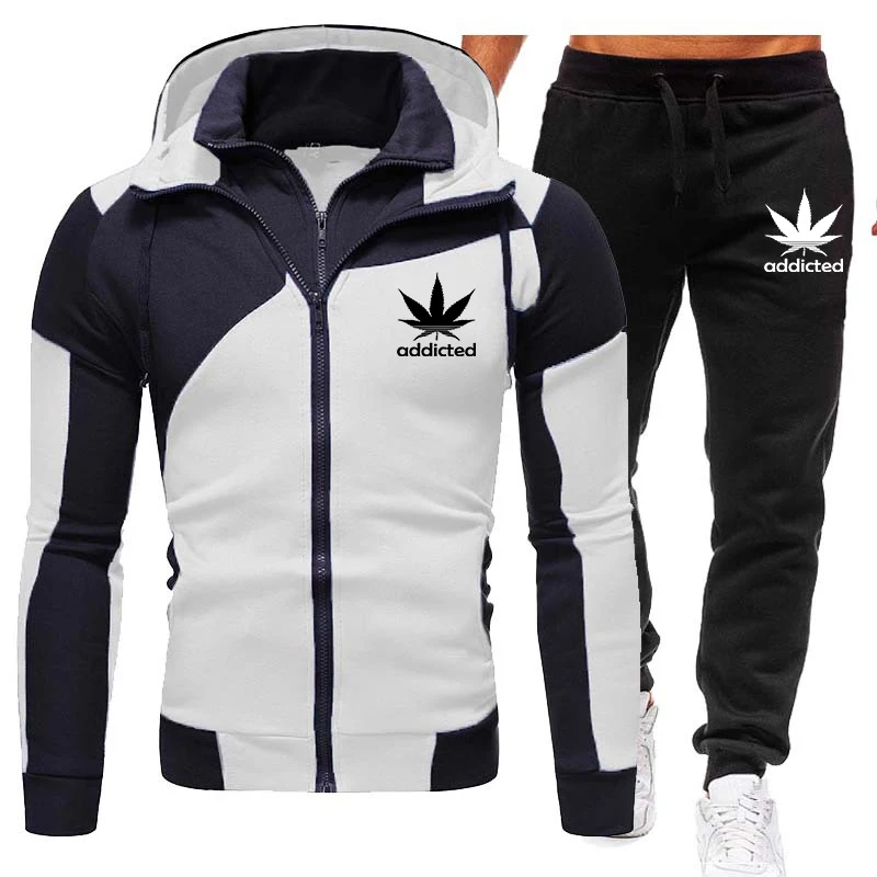 Мужская Спортивная толстовка с капюшоном, темно-синяя повседневная спортивная куртка на двойной молнии с капюшоном, классические брюки для осени и зимы, 2021