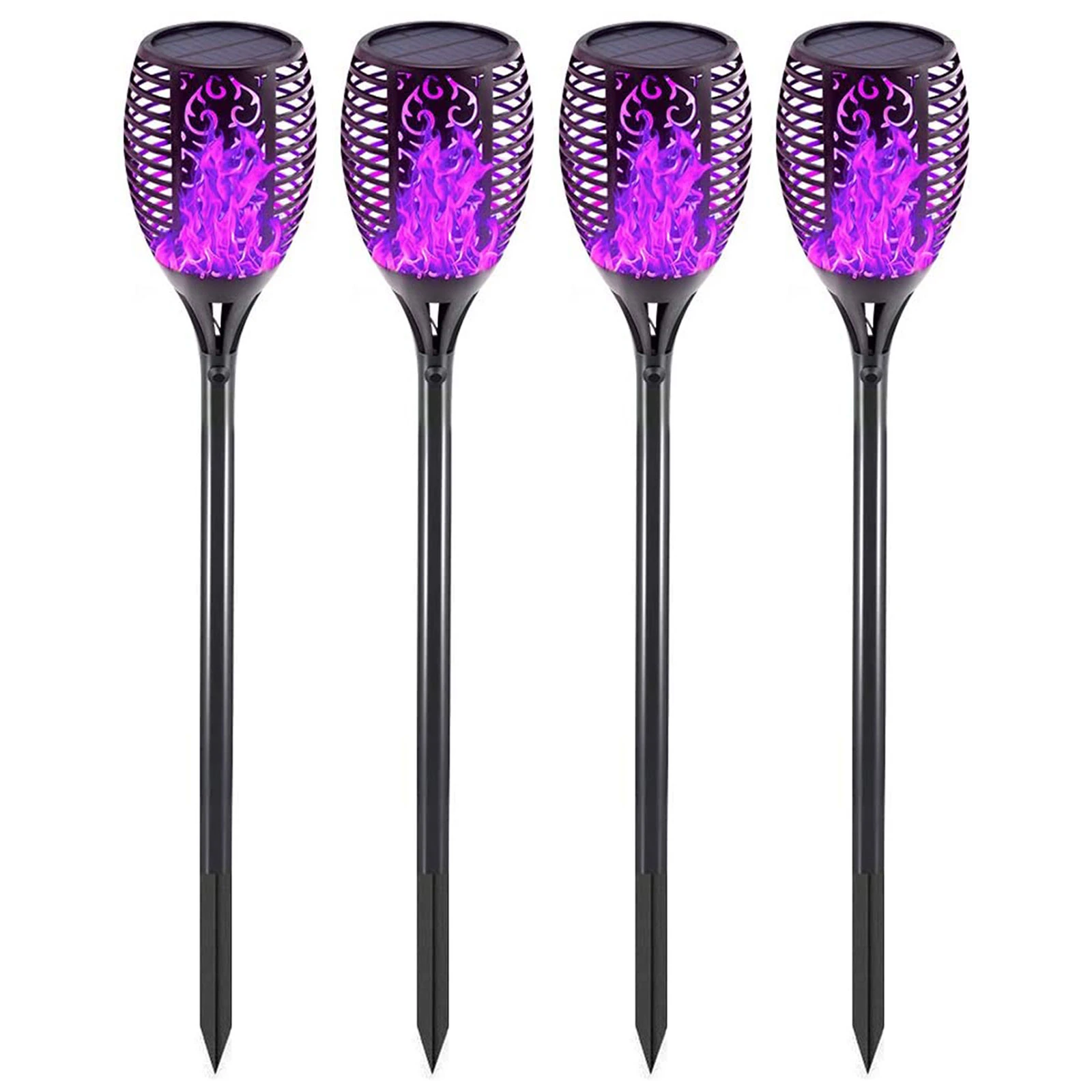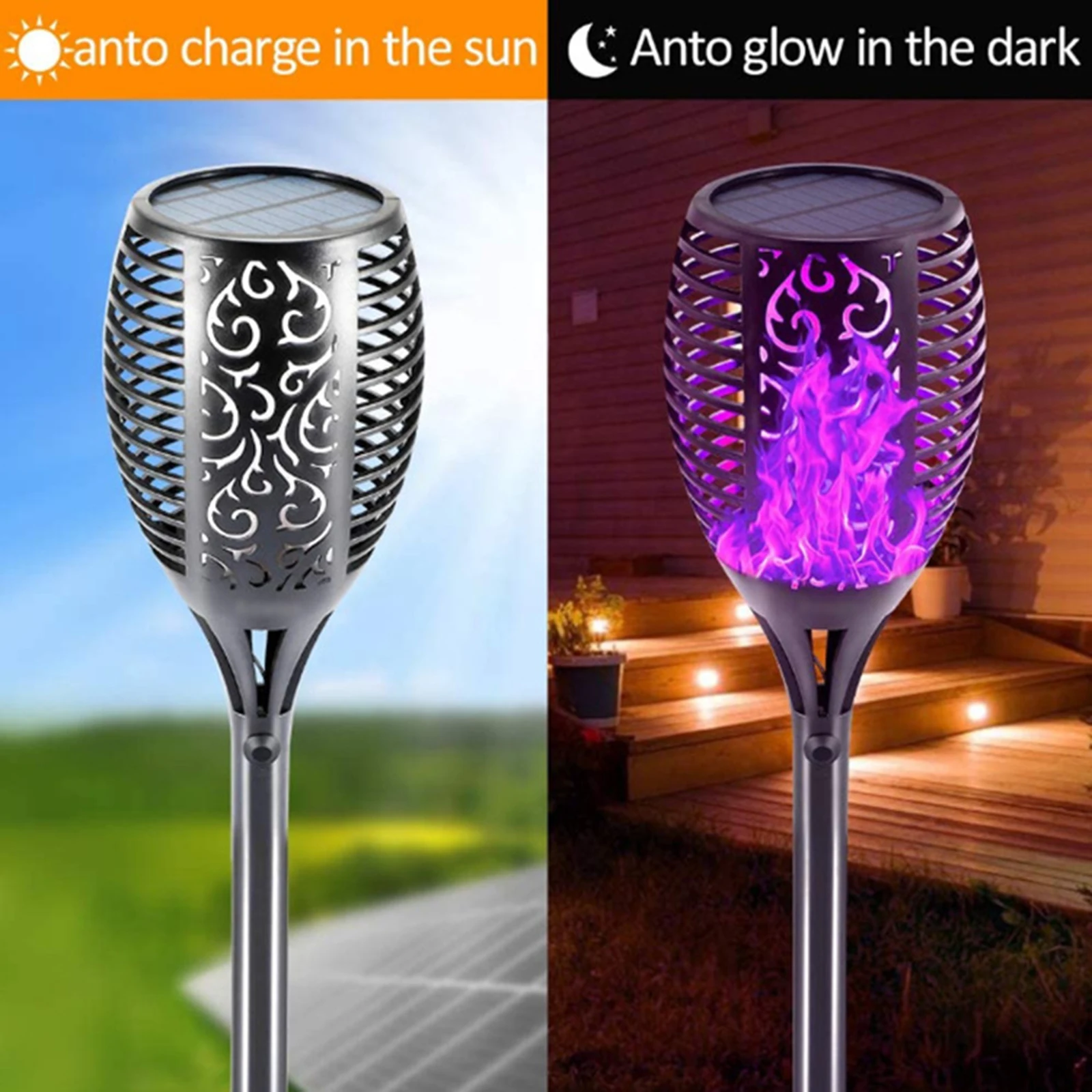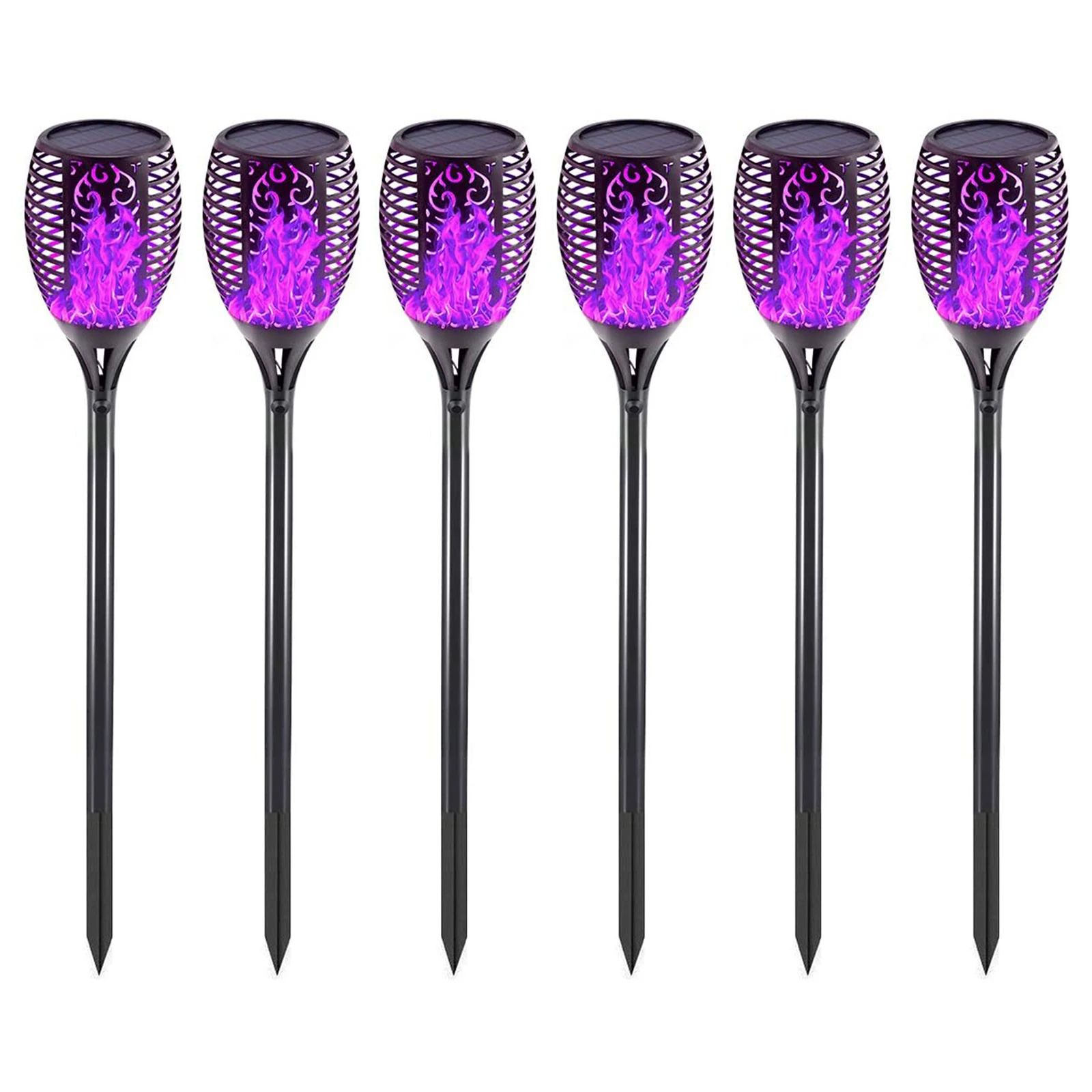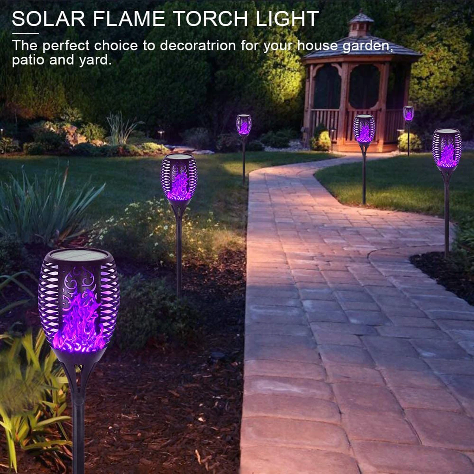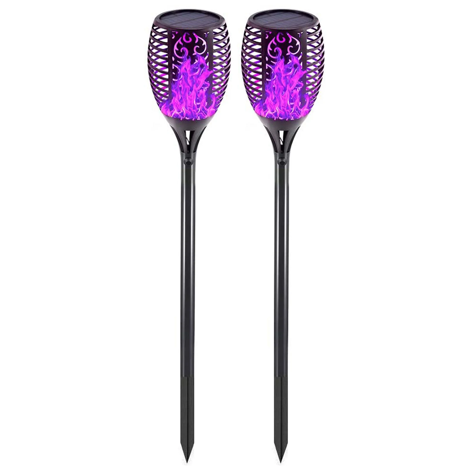 Светодиодный фонарик с пламенем на солнечной батарее, водонепроницаемый фиолетовый светильник для украшения сада, уличное освещение для газона, дорожек, двора, внутреннего дворика, ландшафта, 12 светодиодов