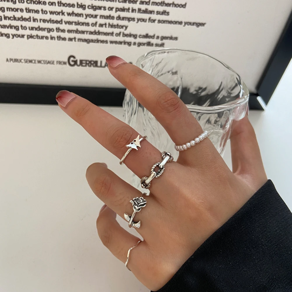 Кольцо женское, металлическое, с листьями, винтажное, набор колец в стиле панк