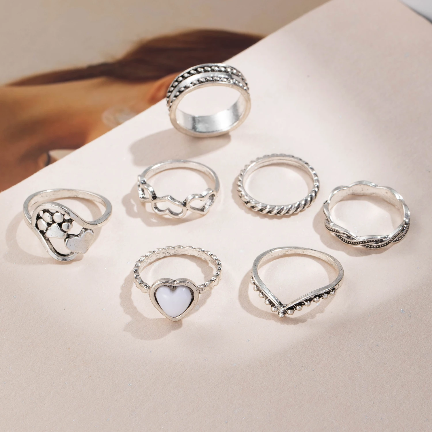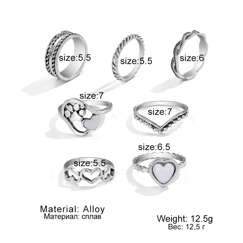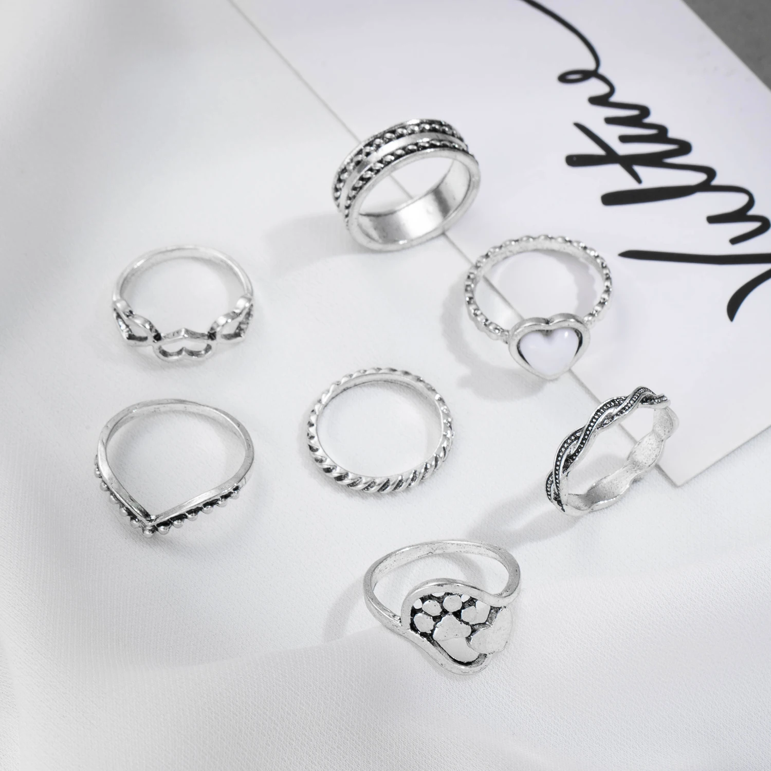 Новые винтажные серебряные кольца на палец, набор для женщин и дево...