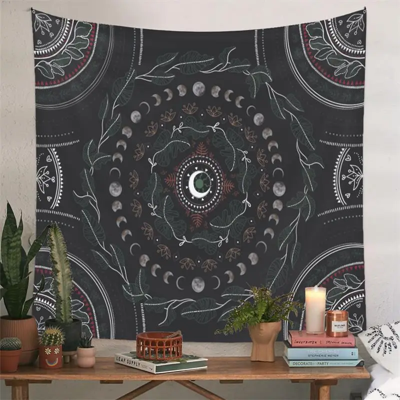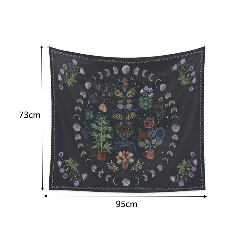 Цветочный гобелен, настенный гобелен с фазой Луны, настенный подвесной ботанический полиэстеровый тканевый настенный художественный гобелен для дома