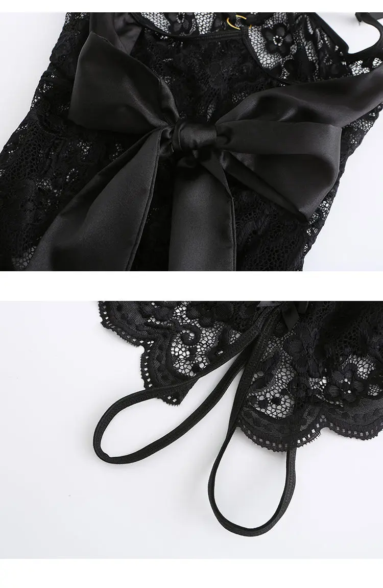 Женское сексуальное слитное боди на шнуровке, романтичное Прозрачное нижнее белье, соблазнительное ночное белье с открытой промежностью, Женская милая Домашняя одежда с бантом
