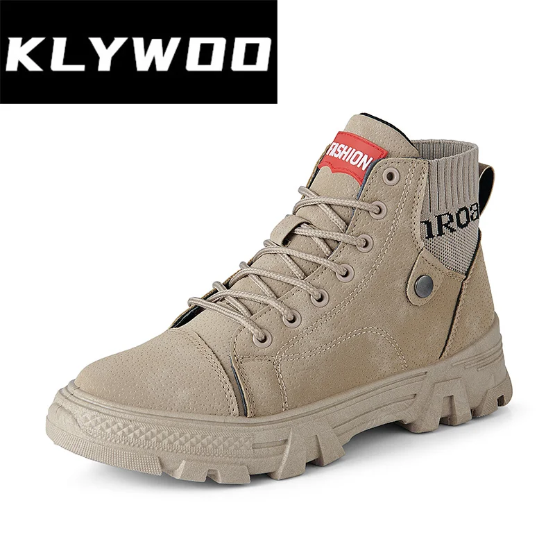 Мужские кожаные ботинки KLYWOO, зимние водонепроницаемые ботинки в стиле милитари, повседневные ботинки с высоким берцем