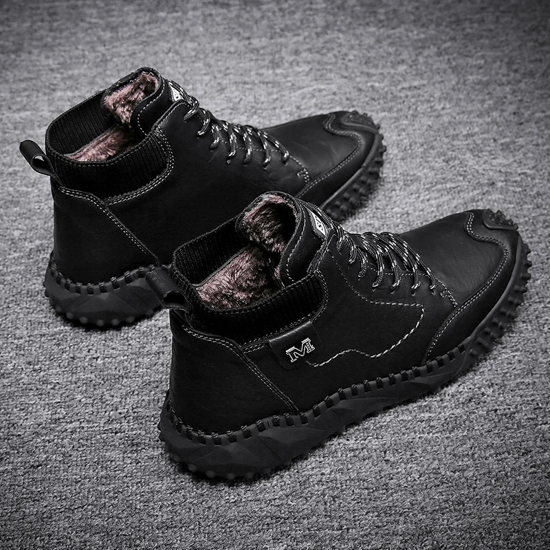 Ботинки мужские, из мягкой кожи, с плюшевой подкладкой, теплые, водонепроницаемые, для улицы, работы, мотоциклетные, всесезонные, для зимы