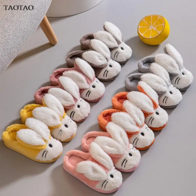 Тапочки с мультяшным Кроликом, зимняя теплая Домашняя обувь, Симпат...