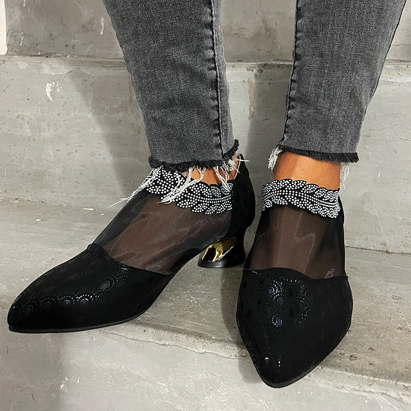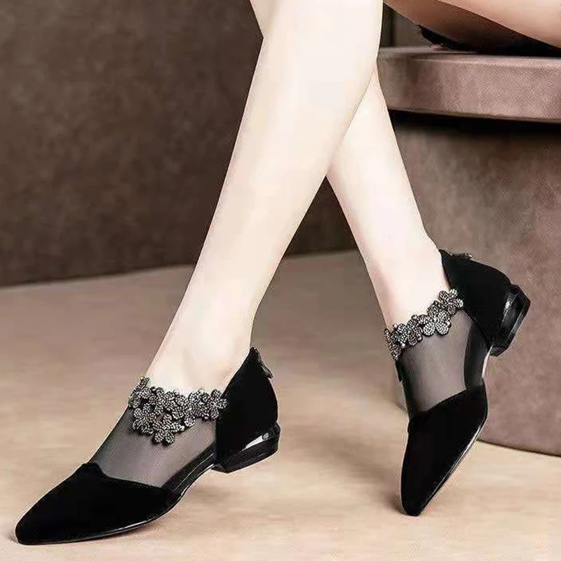 Летняя обувь с отделкой, женские полусапожки, обувь на ремешке, туф...