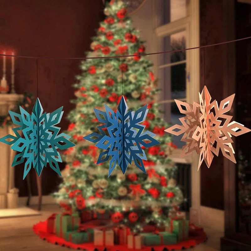 6 шт.компл. WhitрозовыйЗолотой картон трехмерная Снежинка подвесной...