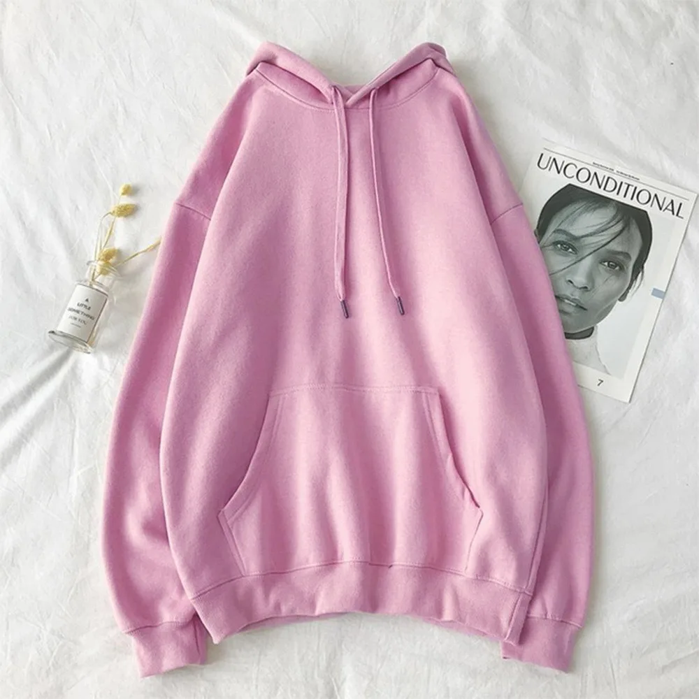 Новинка, модный однотонный свитшот, Женская толстовка с капюшоном, милые женские топы оверсайз в стиле хип-хоп, одежда с круглым вырезом