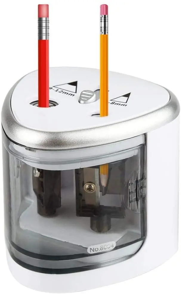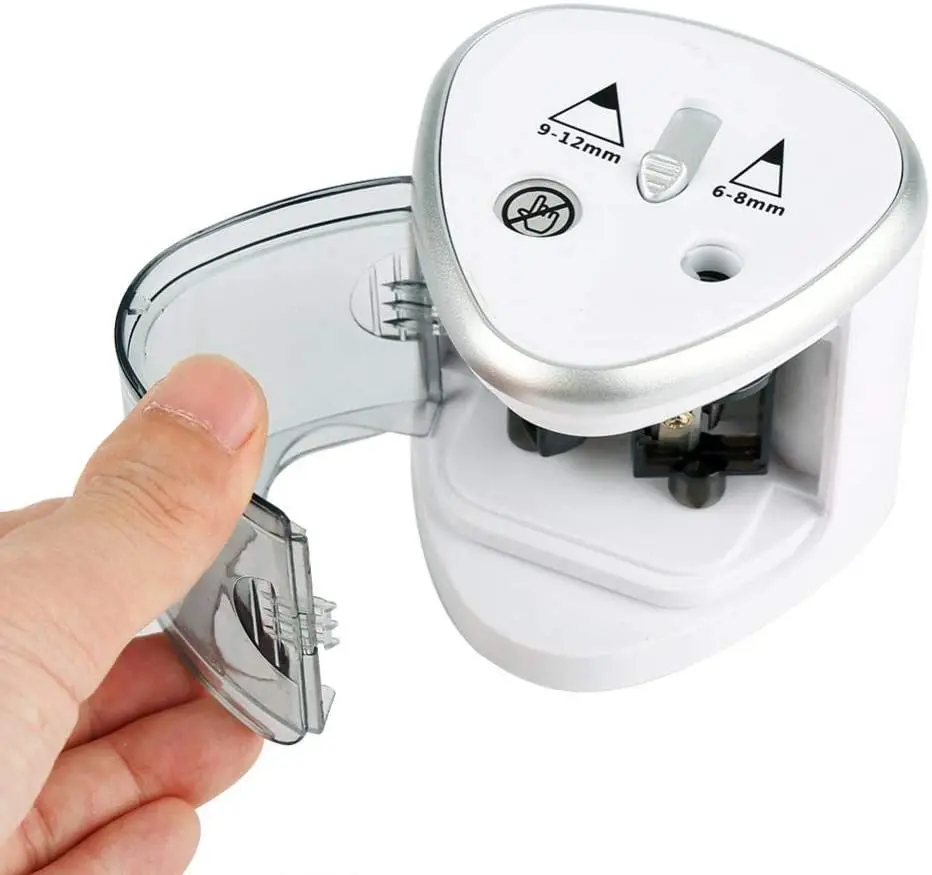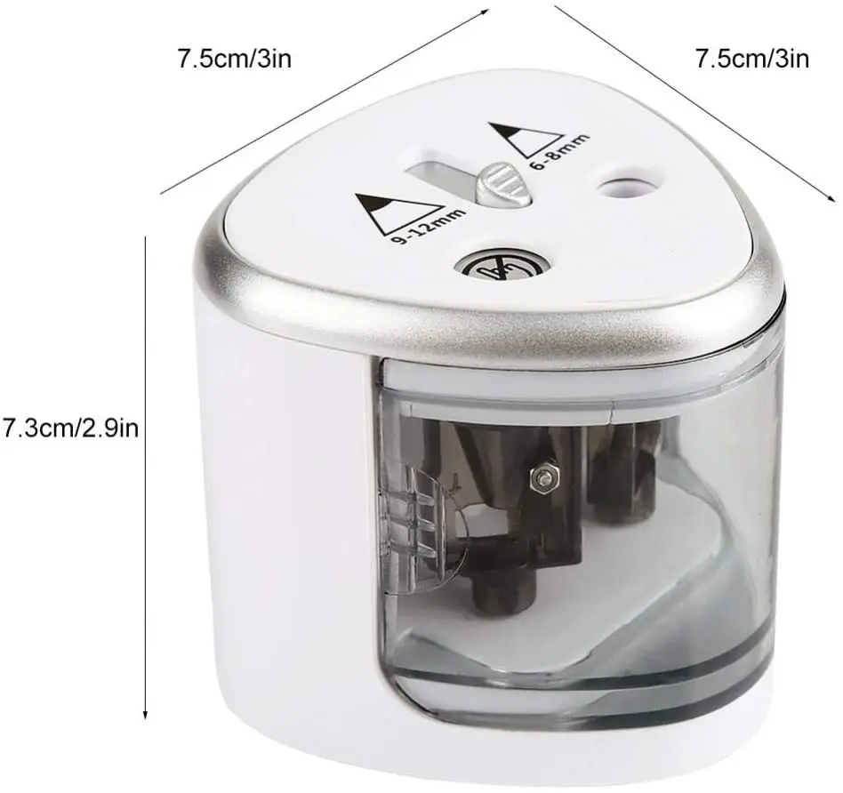 Эта точилка для карандашей имеет два отверстия с двумя отверстиями 6-8 мм и 9-12 мм. Он имеет различные режущие эффекты для удовлетворения ваших различных потребностей. Он прост в использовании и работает от аккумулятора, прост в переноске и широко используется в школах, офисах и домах.