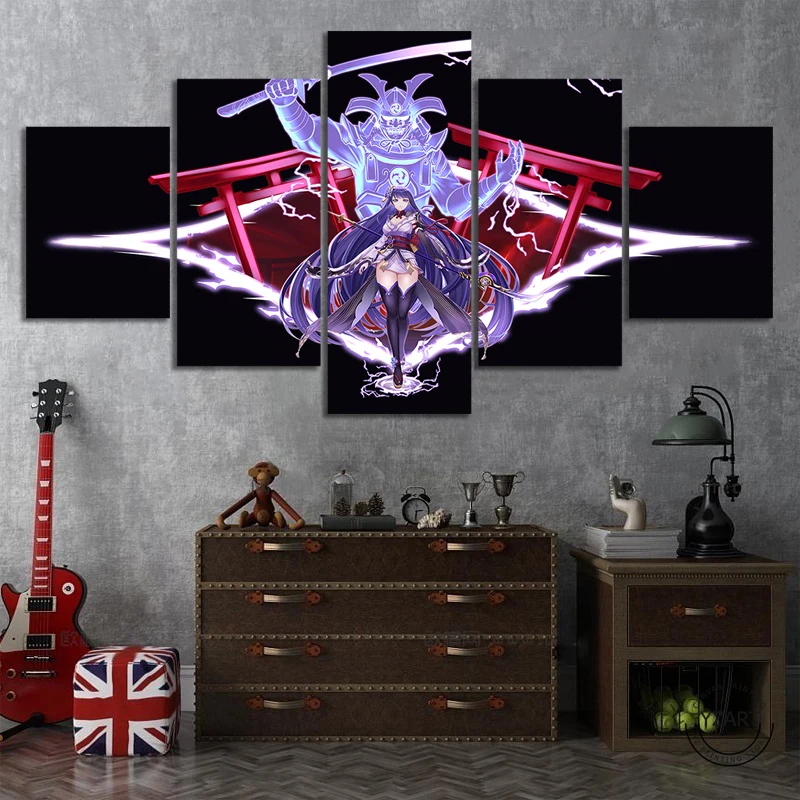 Плакат без рамы с видеоигрой, Райден шогун геншин, 5 шт.