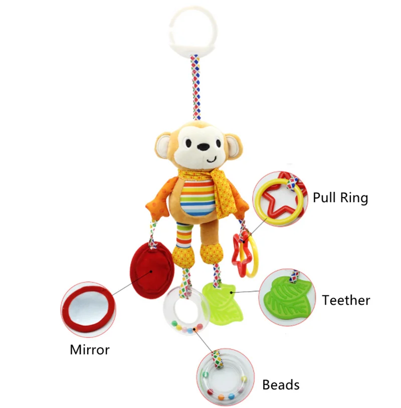 Детские погремушки, мобильные Мультяшные подвесные игрушки для кровати, коляски, спиральные плюшевые пищалки для младенцев, ручные колокольчики, куклы-соски, погремушки