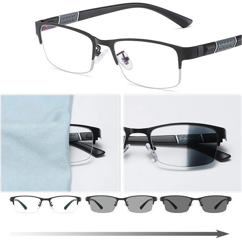 Уличные умные фотохромные очки для близорукости для мужчин и женщин, очки с защитой от синего излучения и усталости, компьютерные очки для близорукости с полуободковой оправой 2,5