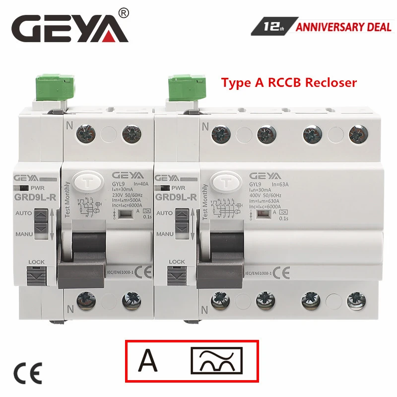 GEYA GRD9L-R Авто Recloser с типом RCCB RCD ELCB 40A 63A 30mA 100mA 300mA предохранитель безопасности