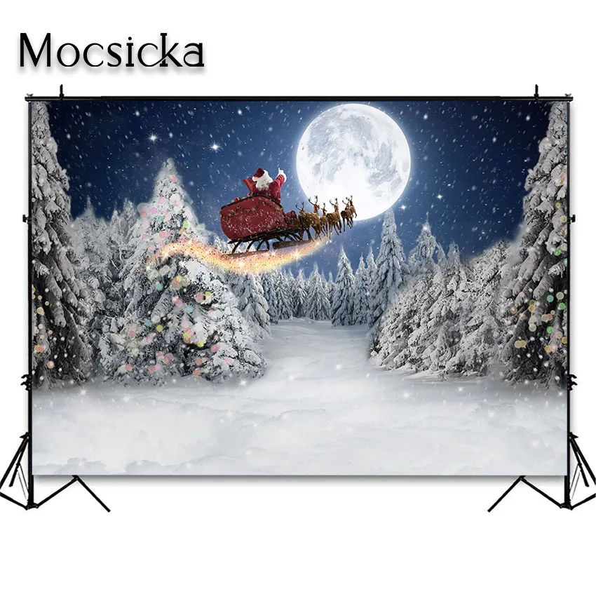 Фотофон зима снег сцена РОЖДЕСТВО канун луна ночь Санта Клаус и олень Дети Фотостудия