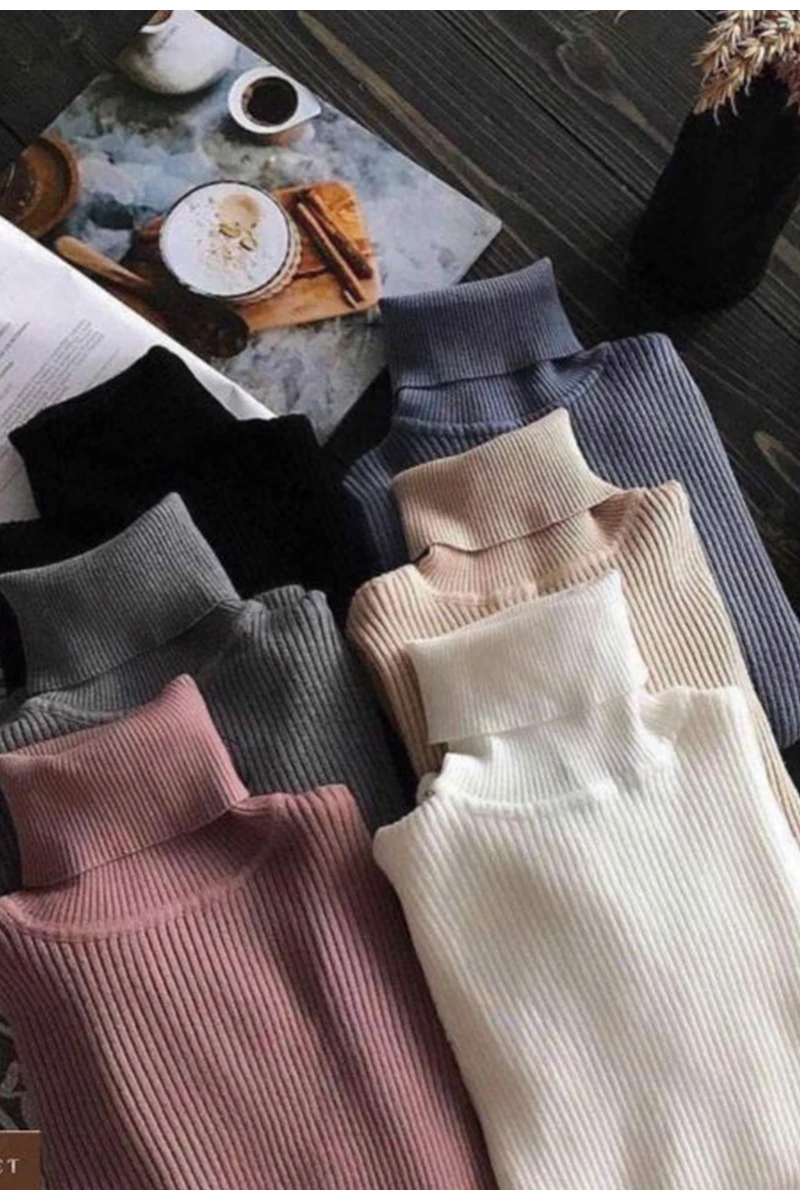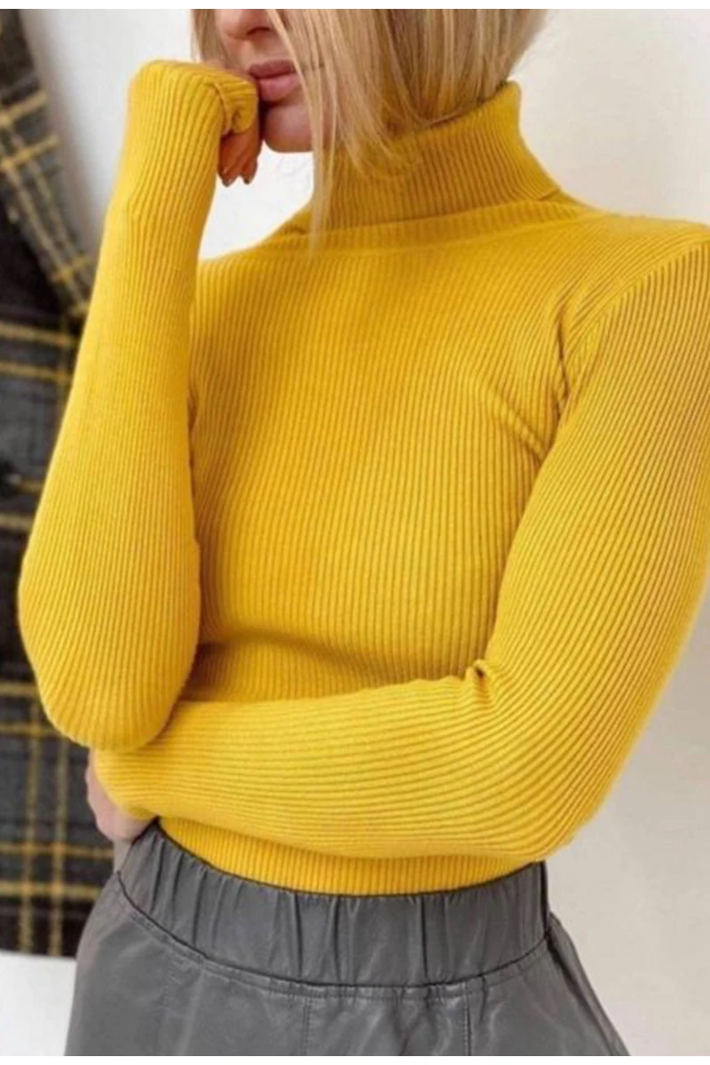Свитер женский трикотажный с длинным рукавом и высоким воротником