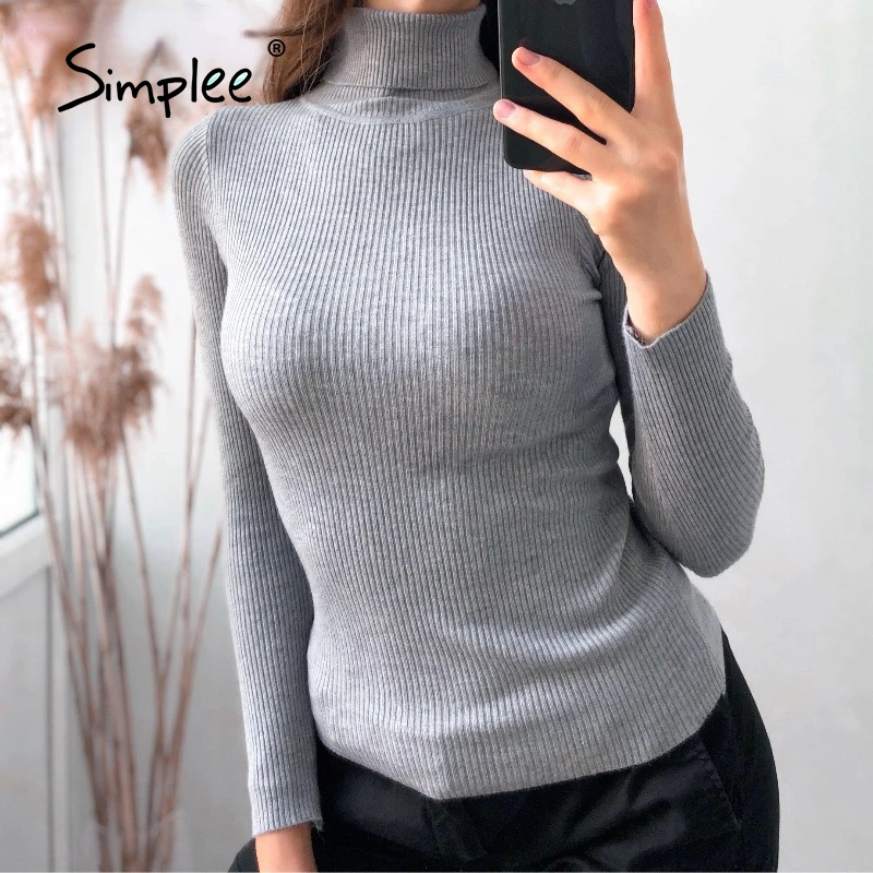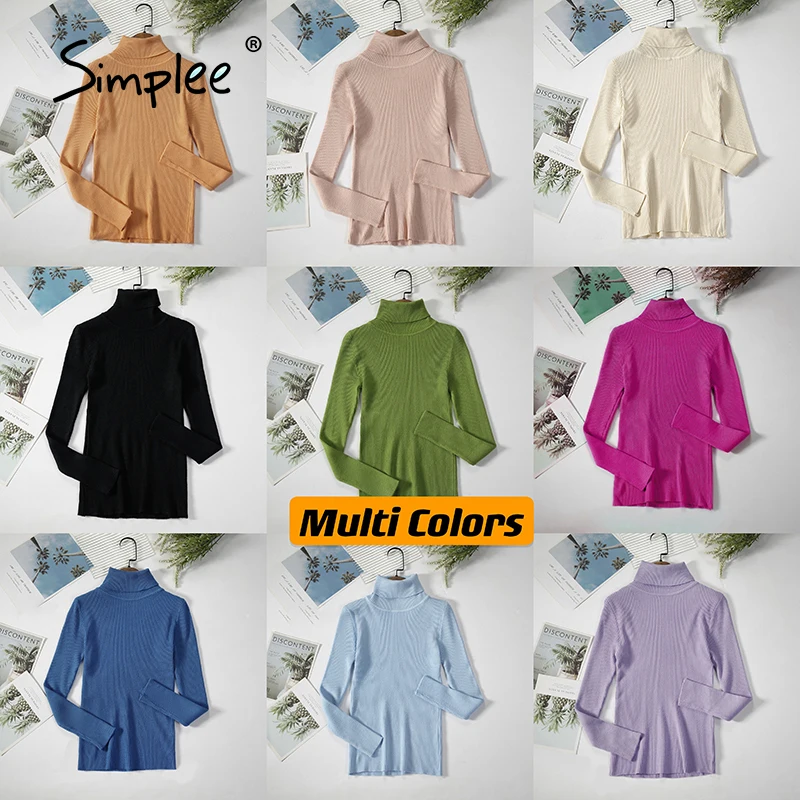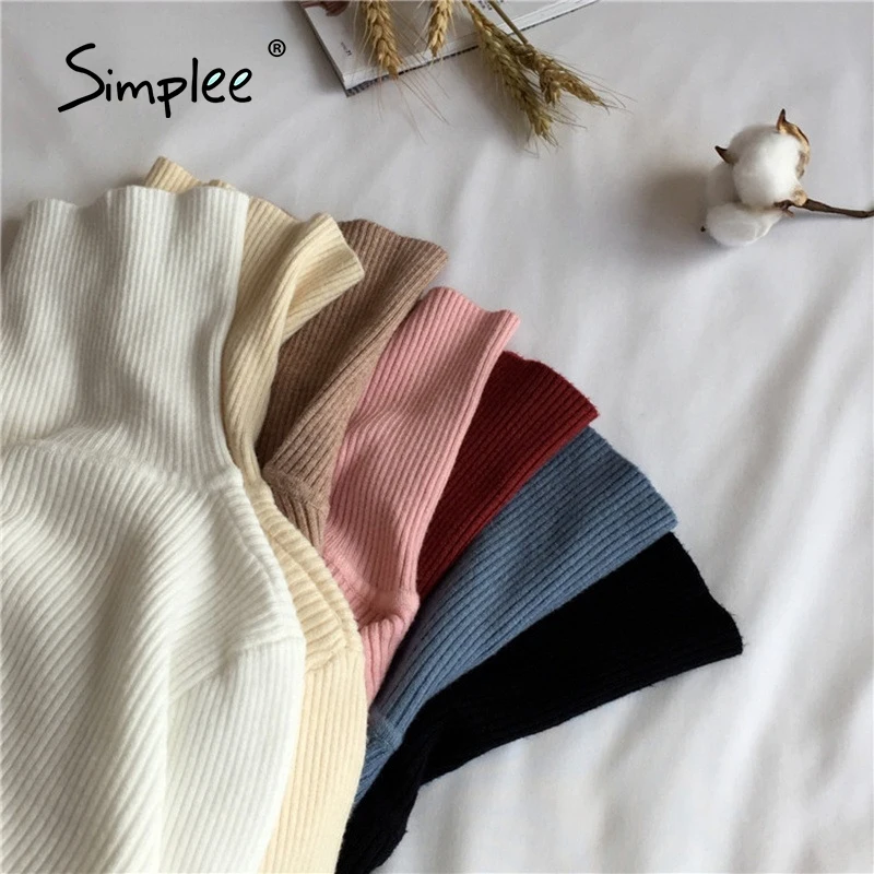 Simplee Повседневный базовый Мягкий Топ с высоким воротником; Сезон осень-зима; Минималистичный пуловер с длинными рукавами; Цвет черный, белый; Короткий зеленый женский джемпер; 2021